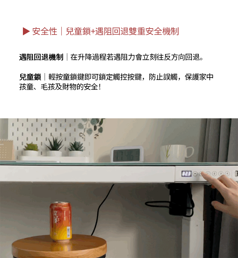 ◆ 童鎖按鈕/遇阻回退 雙重保護
