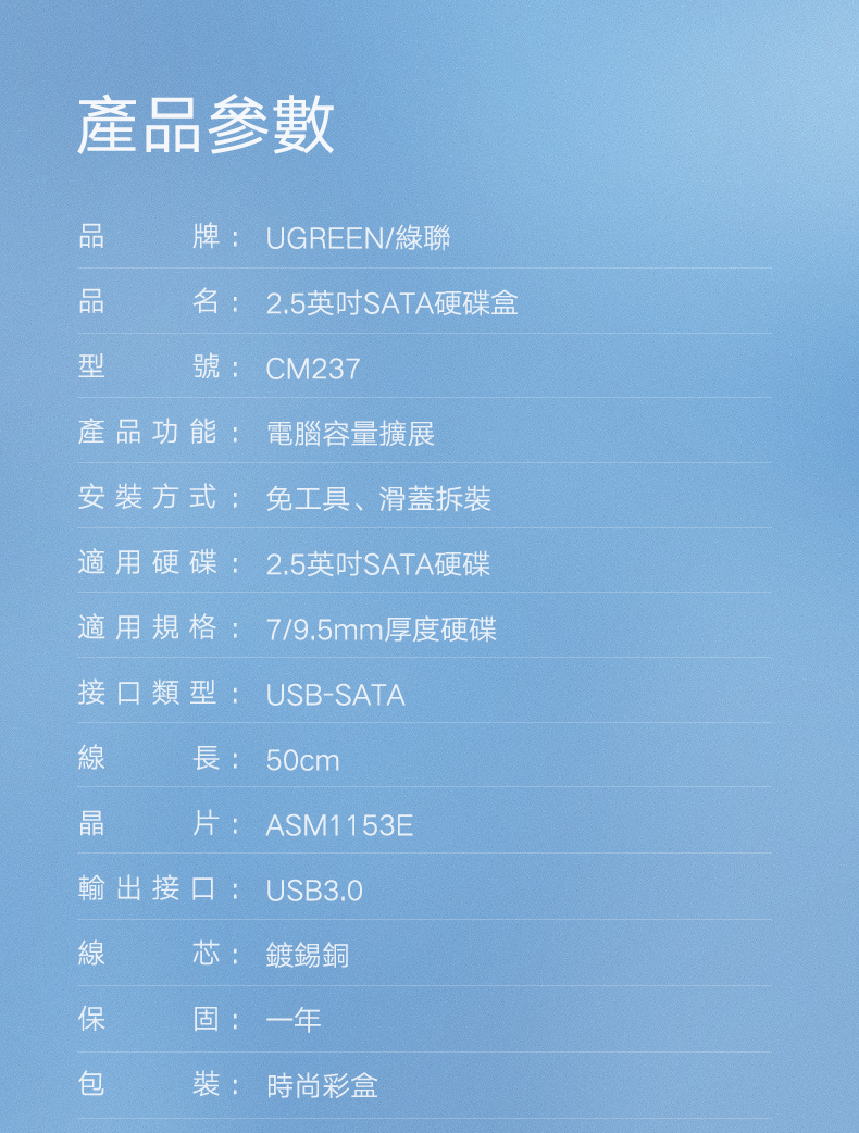 [拆封新品/福利品]綠聯 2.5吋USB3.0硬碟外接盒