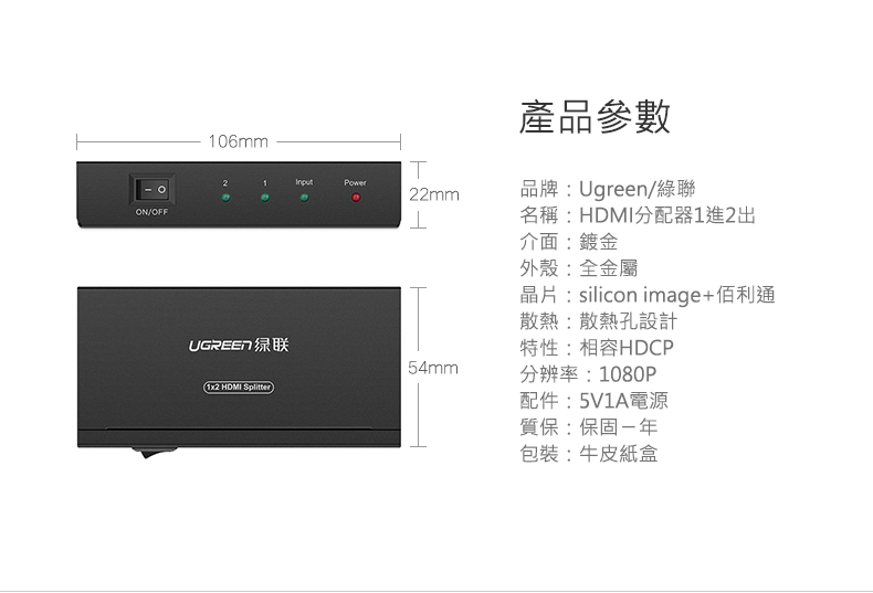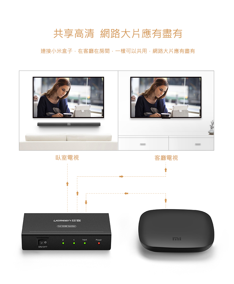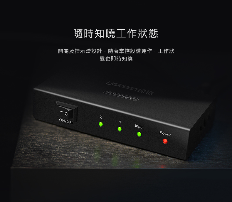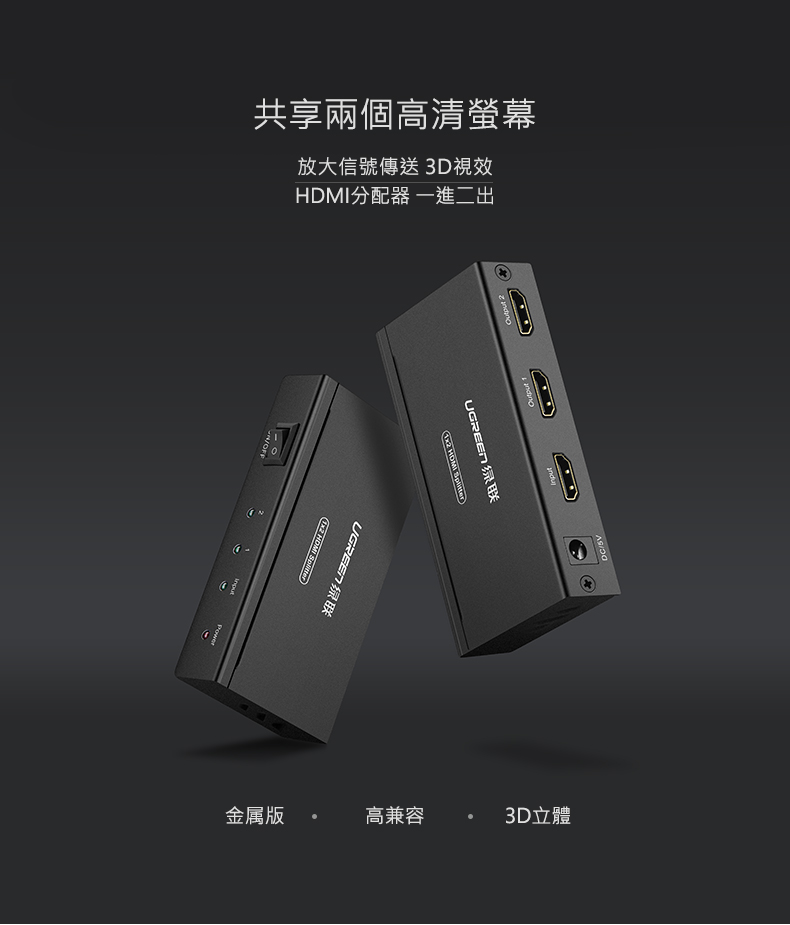 [拆封新品/福利品]綠聯 HDMI一分二分配器(一進二出) 1080P金屬版