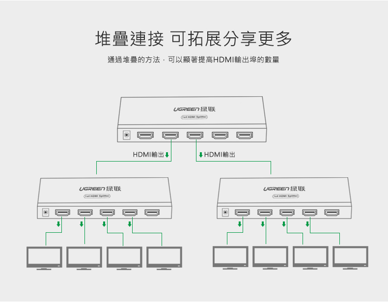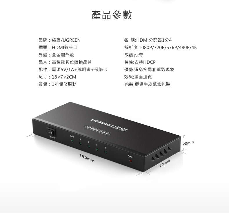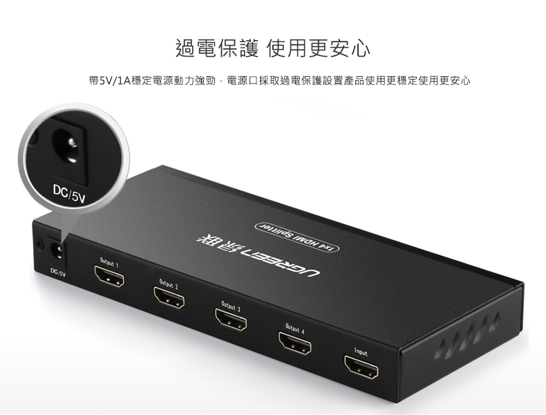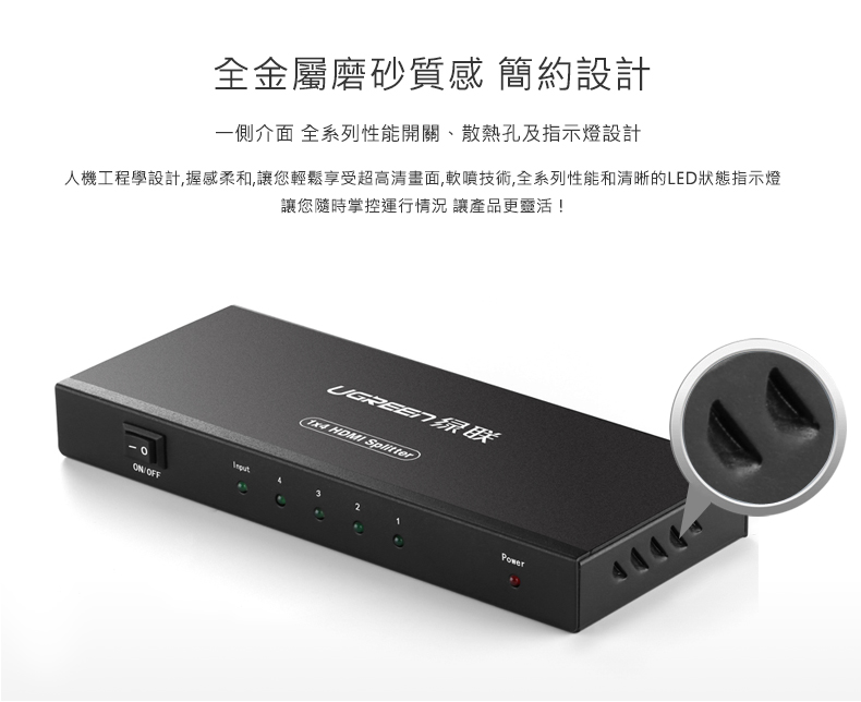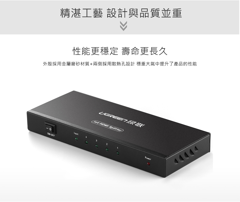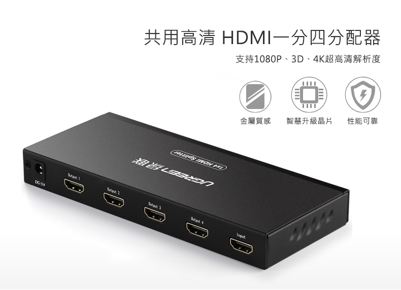[拆封新品/福利品]綠聯 HDMI一分四分配器(一進四出) 4K金屬版