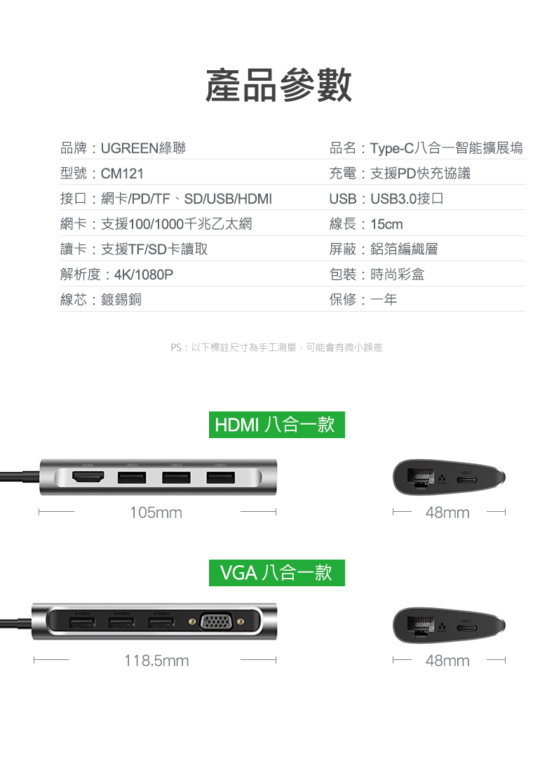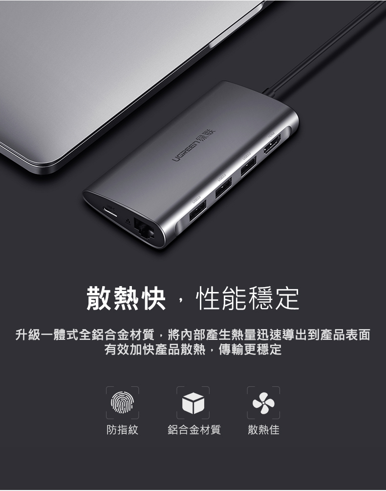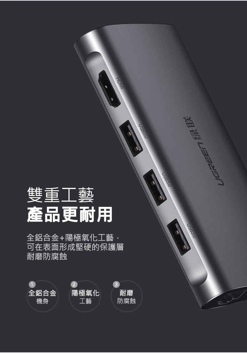 [福利品] 綠聯 Type C Hub 多功能PD集線器 USB3.0+GLAN +SD+TF 4K HDMI版