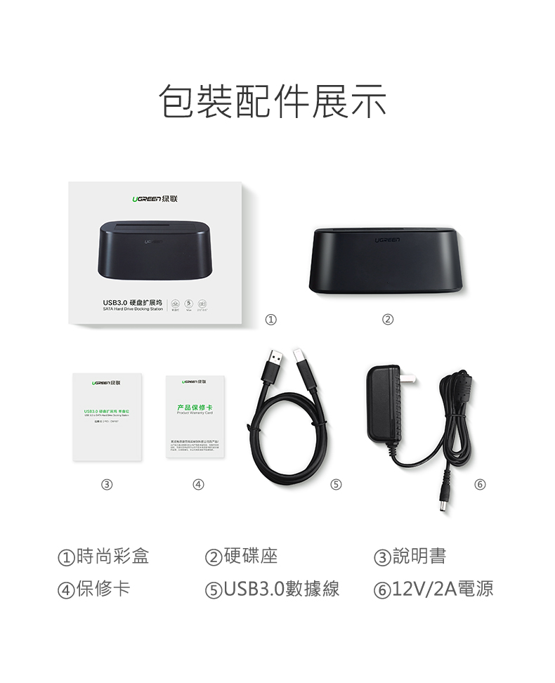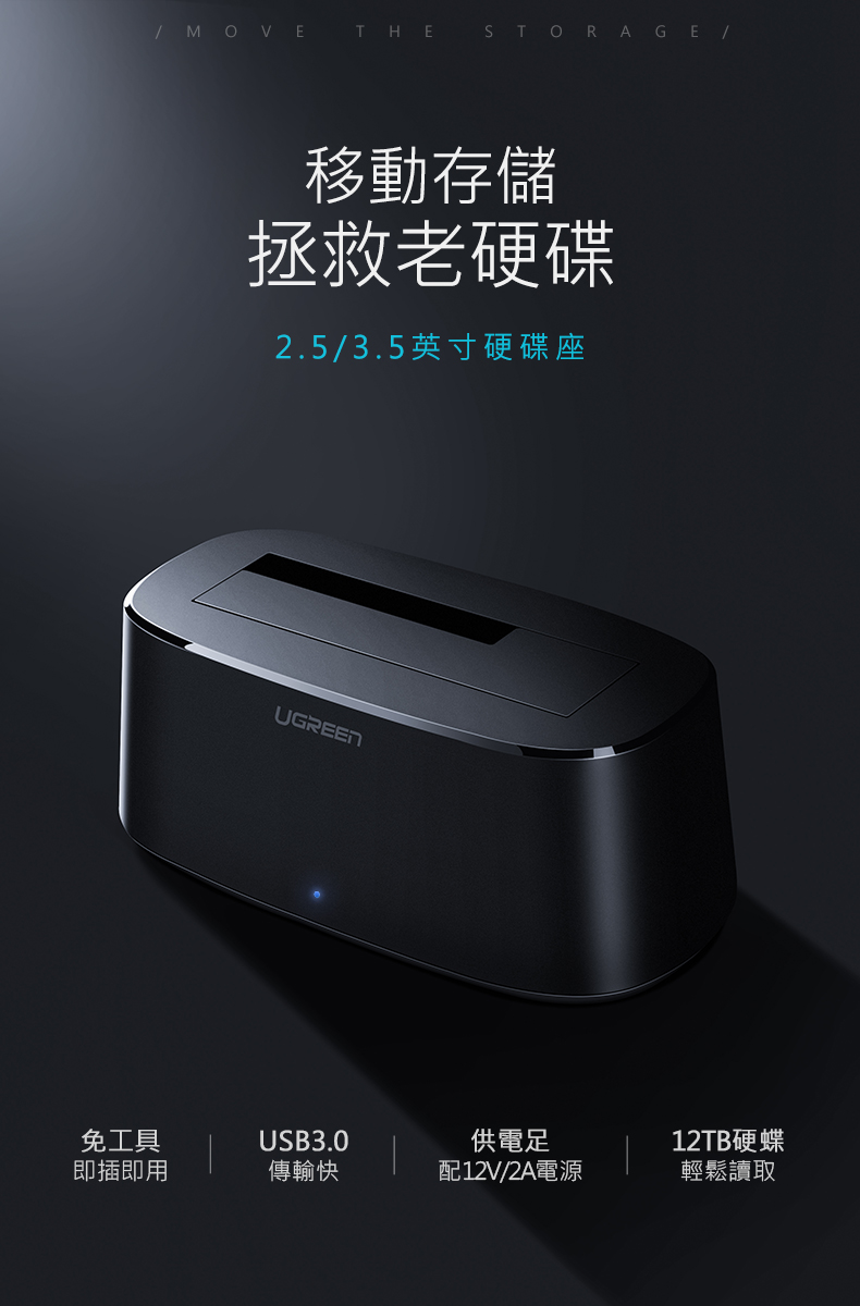 【商品特色】 ★免工具即插即用 ★USB3.0傳輸快 ★搭配12V/2A電源供電足 ★12TB硬碟輕鬆讀取 ★立式散熱為硬碟降溫 ★智慧休眠減少硬碟磨損