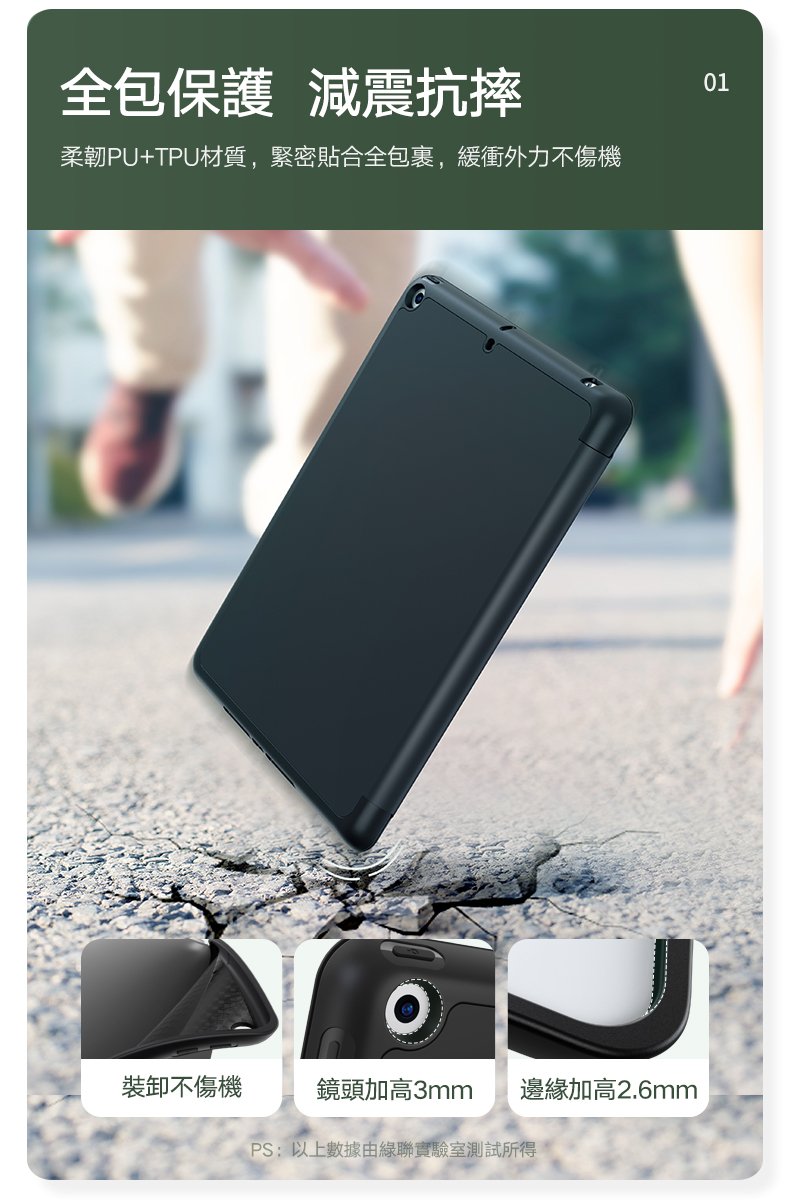 ◆全包式保護 減震抗摔 ◆柔軟纖維/隱形磁鐵/PU細紋皮三層保護 ◆內置鏤空雙扣設計筆槽 輕鬆取放 ◆創意摺疊設計 智慧磁吸 ◆自動喚醒/休眠 減少待機耗能 ◆1:1真機開模 孔位契合不頂膜 ◆內部立體蜂巢設計 快速散熱