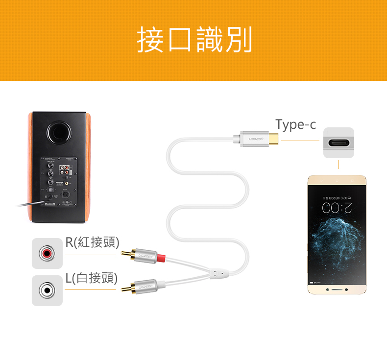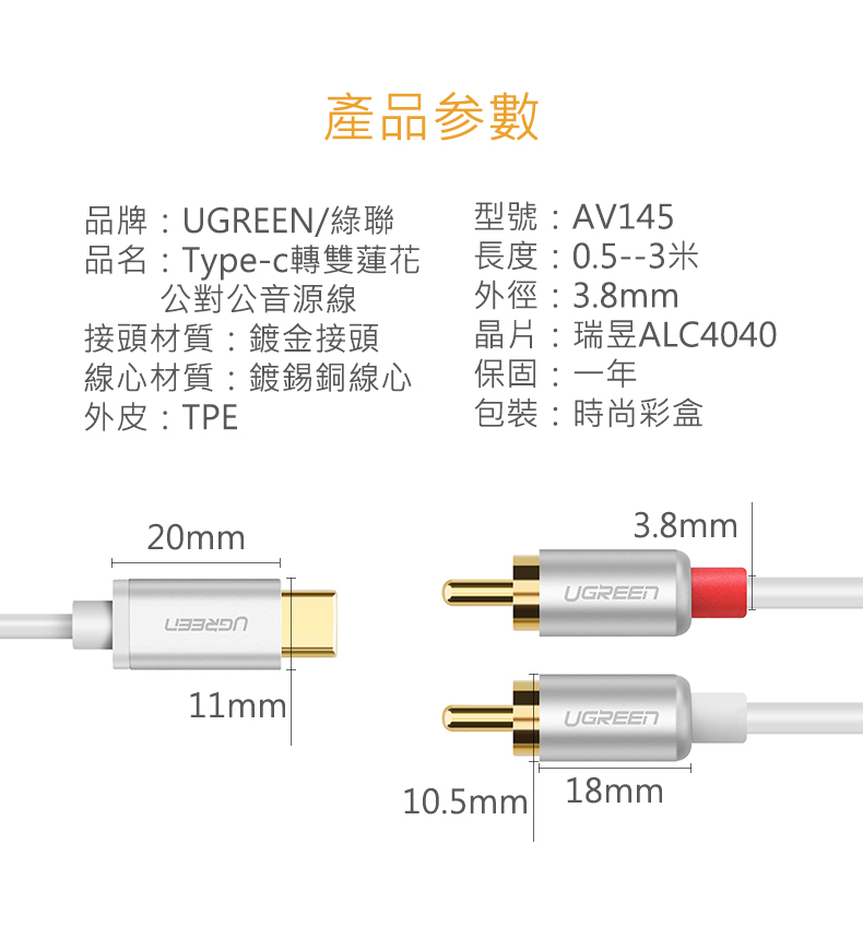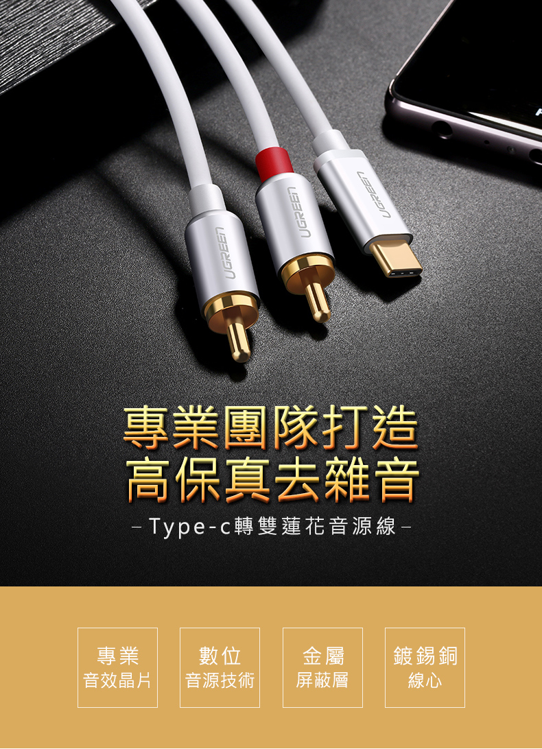 [拆封新品/福利品]綠聯 1.5M Type-c轉2RCA音源線