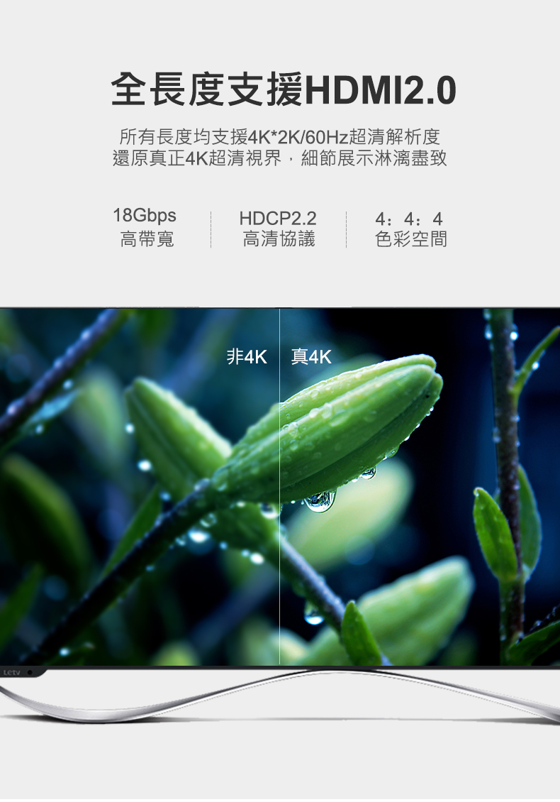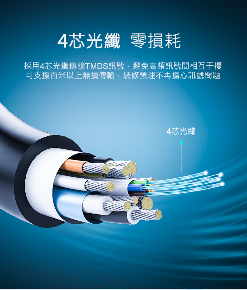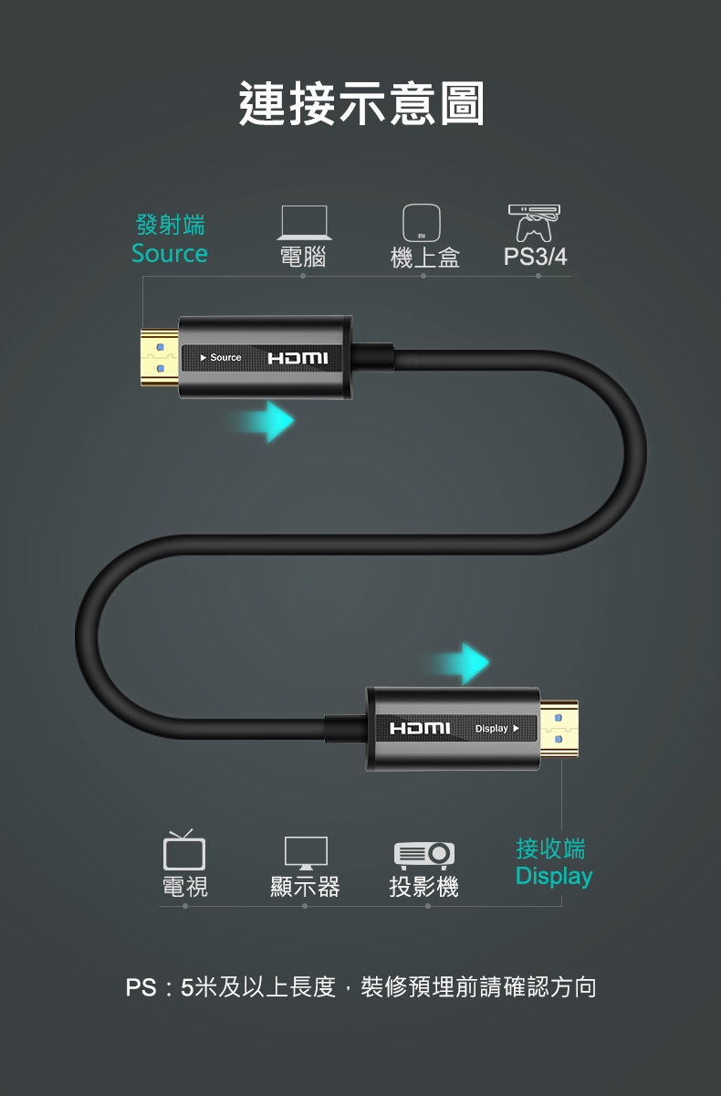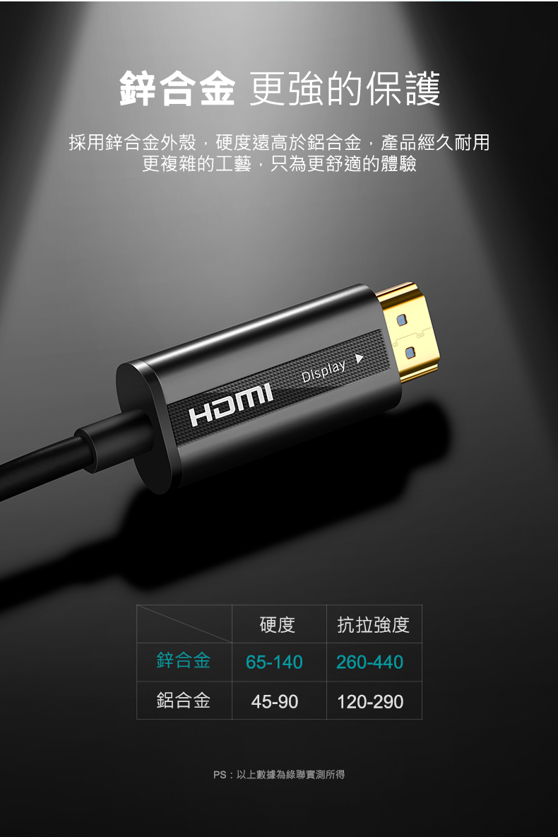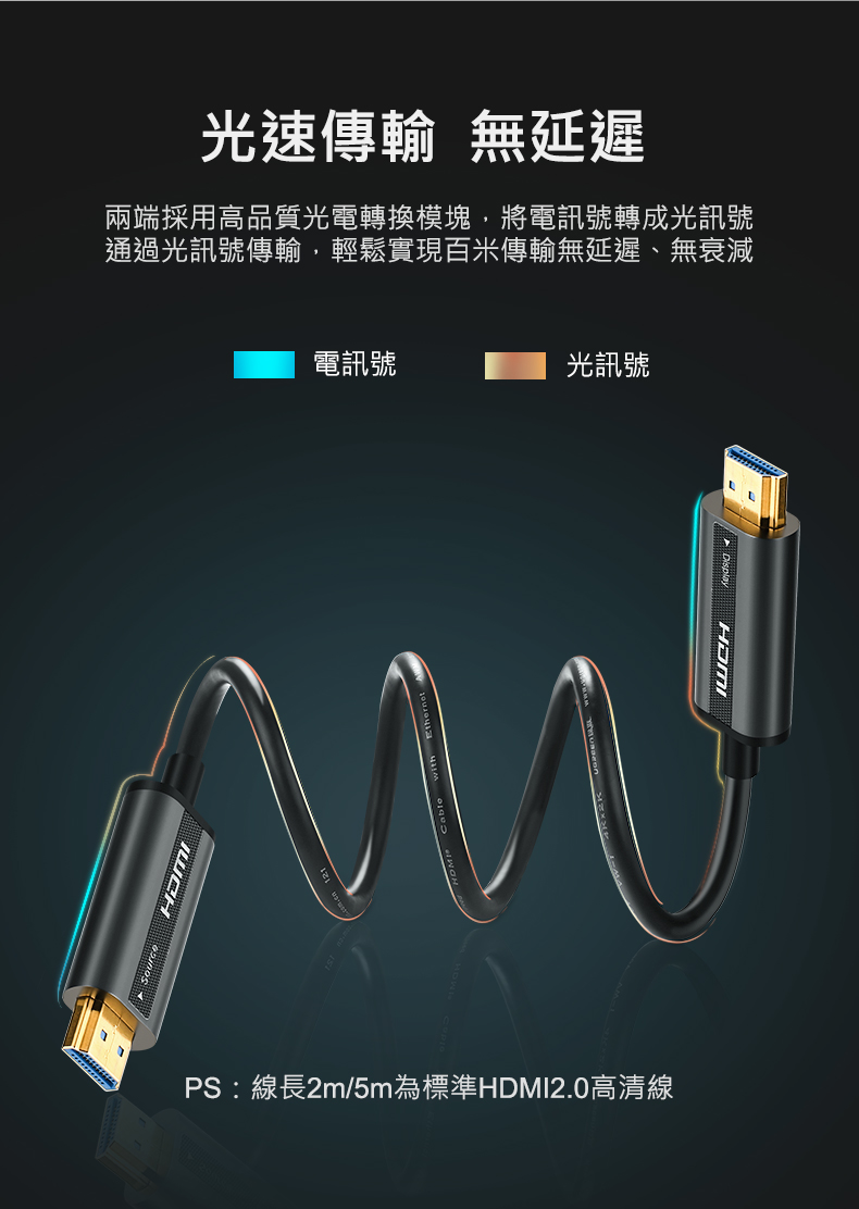 商品特色 ★光速傳輸無延遲,訊號轉換無壓縮 ★無電磁干擾,遠距傳輸零衰減 ★低功耗無輻射,全長度支援HDMI2.0 ★鋅合金更強的保護 ★鍍金接口耐拔插不生鏽