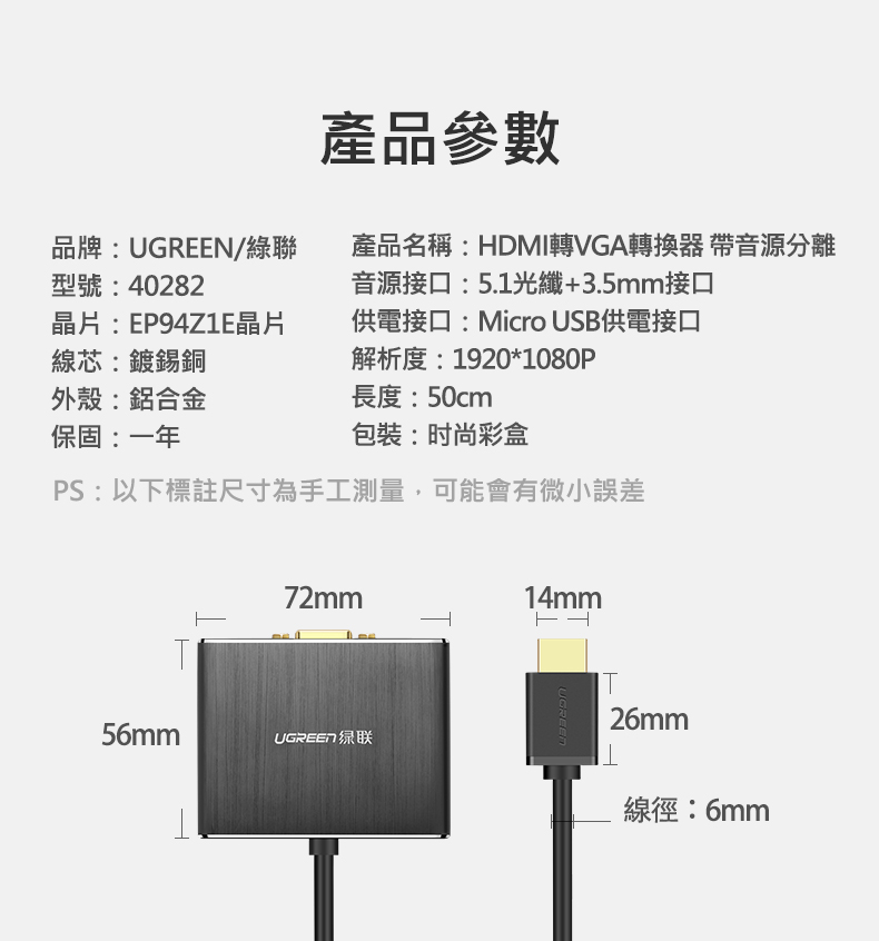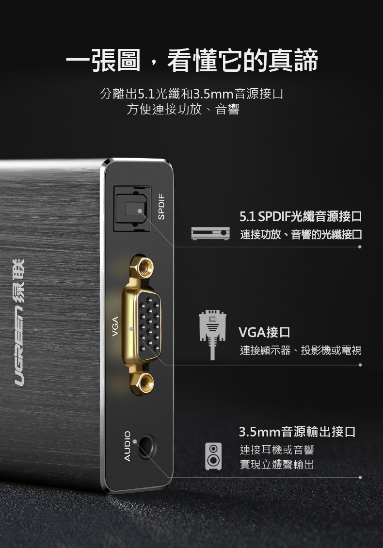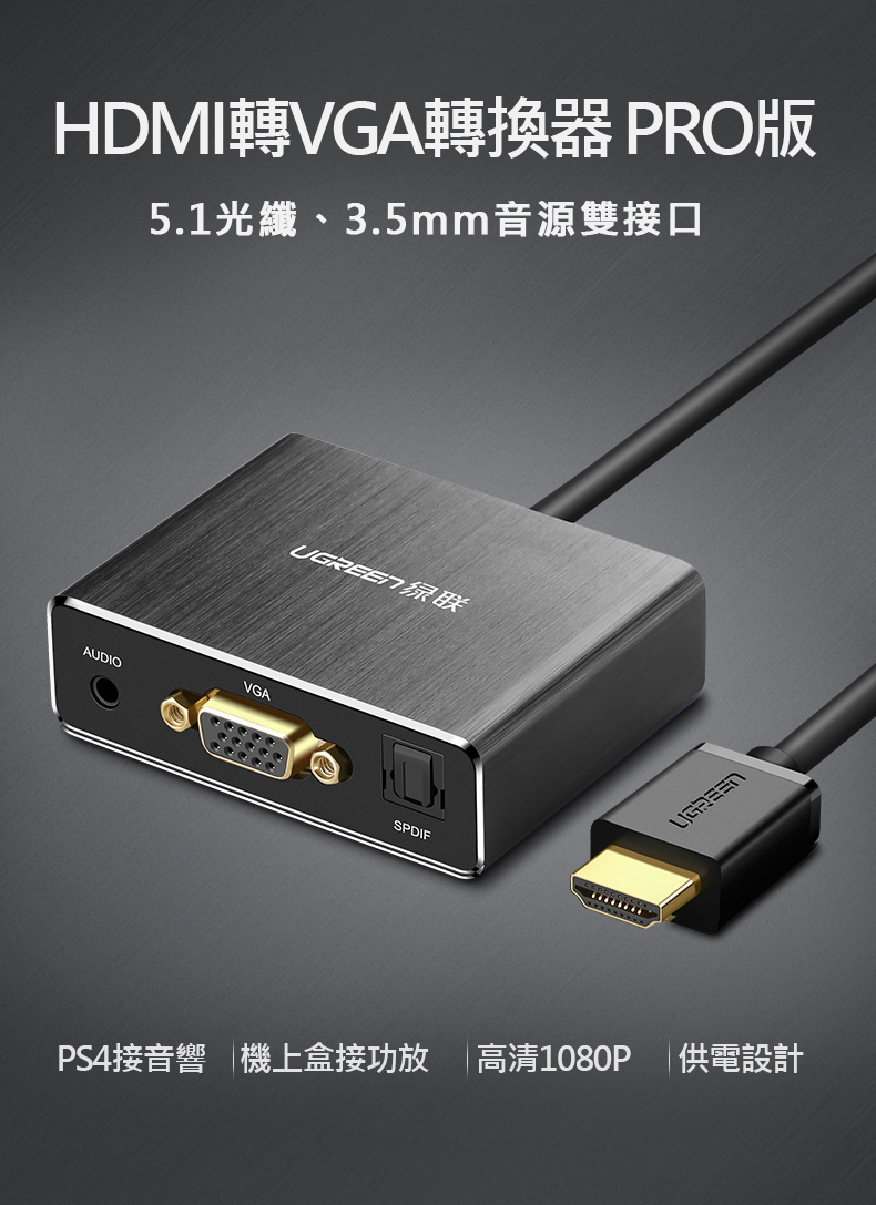 [拆封新品/福利品]綠聯 HDMI轉VGA轉換器SPDIF光纖/3.5mm音效PRO版
