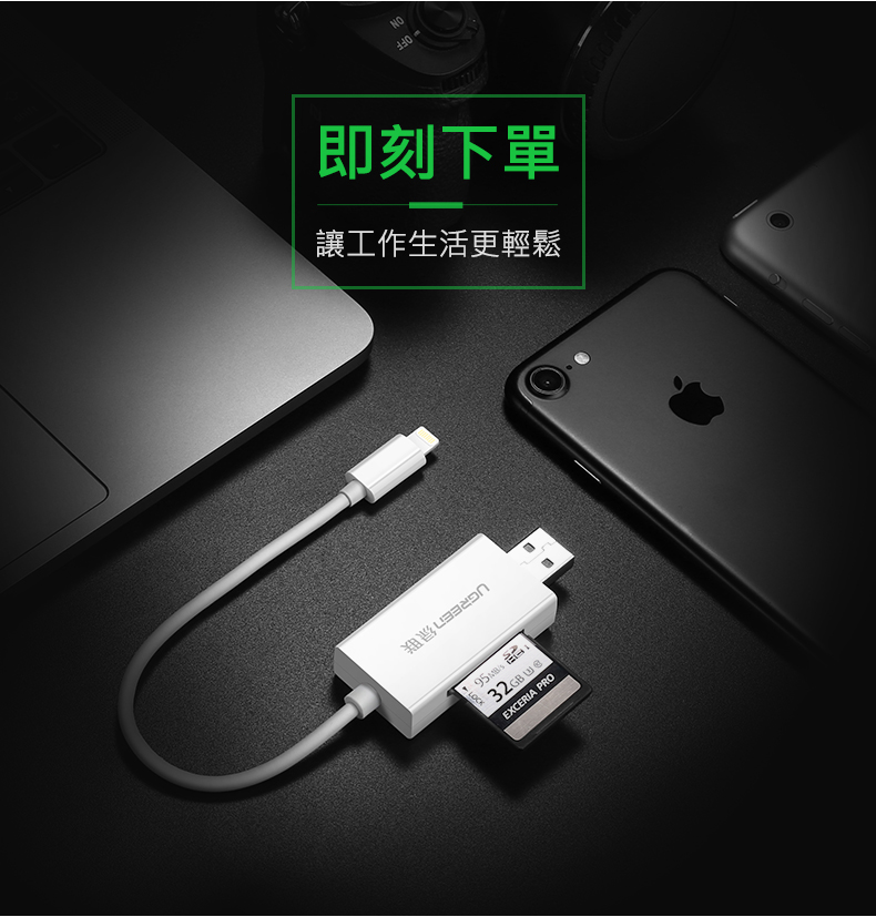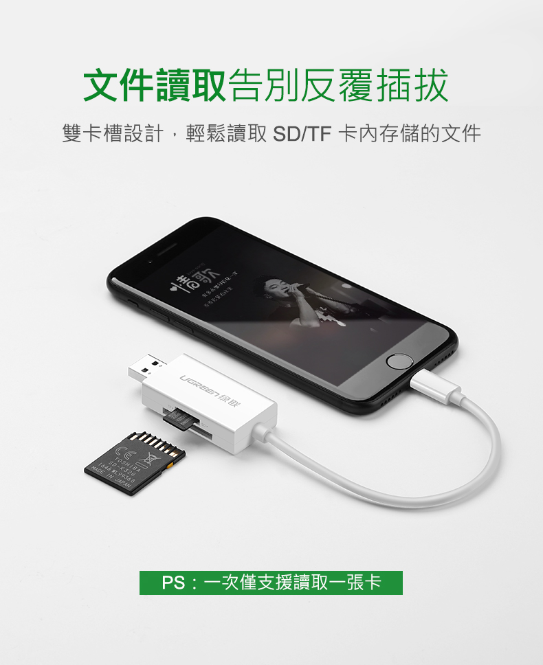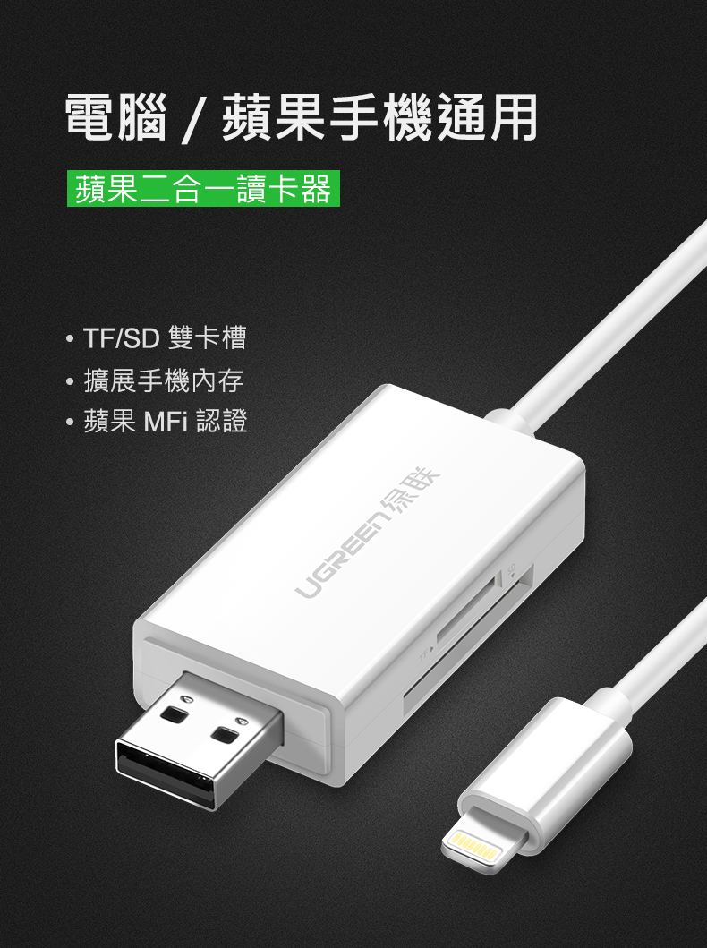 [拆封新品/福利品]綠聯 Mfi Lightning/USB雙介面SD/TF讀卡機 APPLE原廠認證