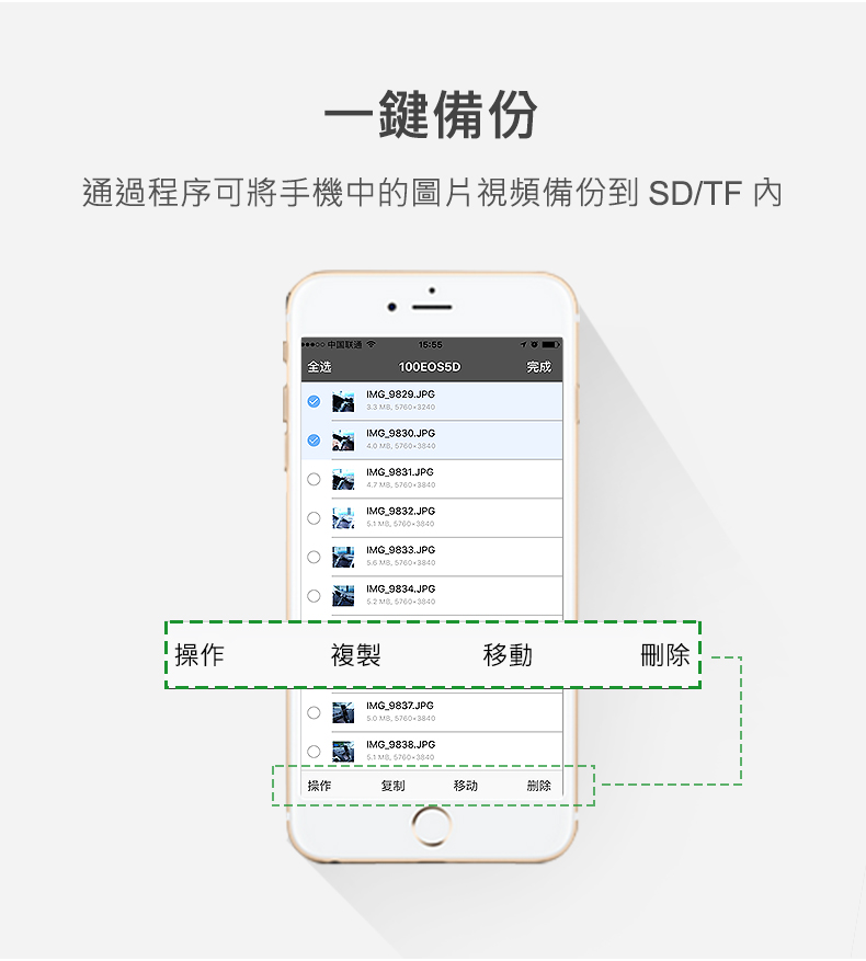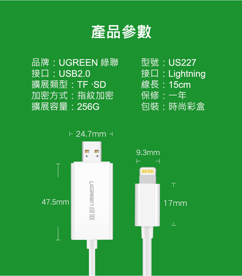 商品特色 ★電腦/蘋果手機通用 ★TF/SD雙卡槽擴展手機內存 ★數據傳輸+手機充電 ★一鍵備份/一鍵分享,指紋加密保護