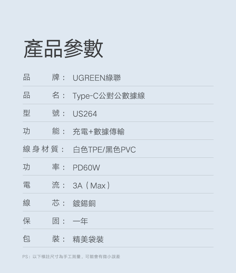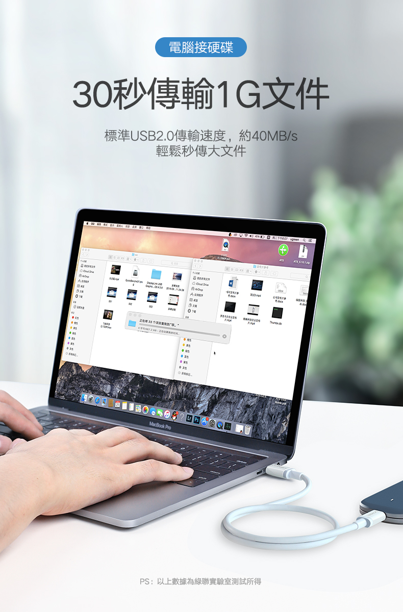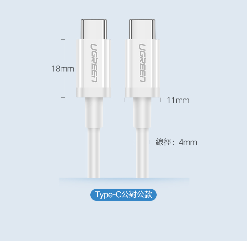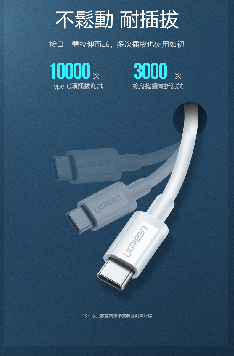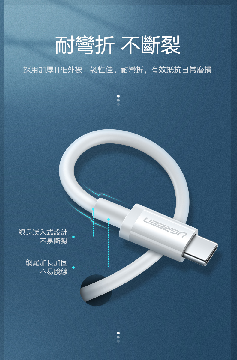[拆封新品/福利品]綠聯 Type-C 快充傳輸線 ABS版 White
