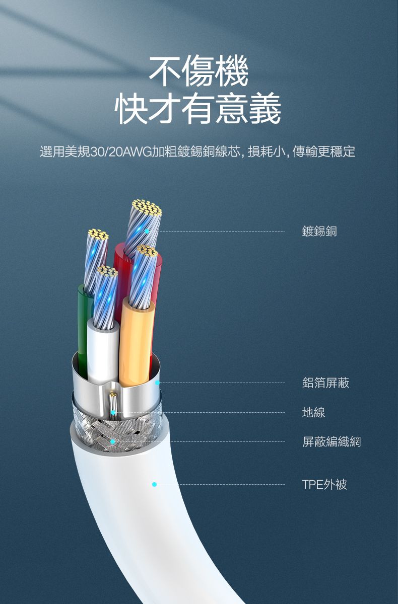 PD閃充急速滿電 可為Switch快速提供電量暢玩更痛快 支援華為/小米快充,30秒傳輸1G文件 30/20AWG加粗鍍錫銅線芯,損耗小傳輸穩定 加厚TPE外被耐彎折不斷裂,接口一體拉伸而成不鬆動耐插拔