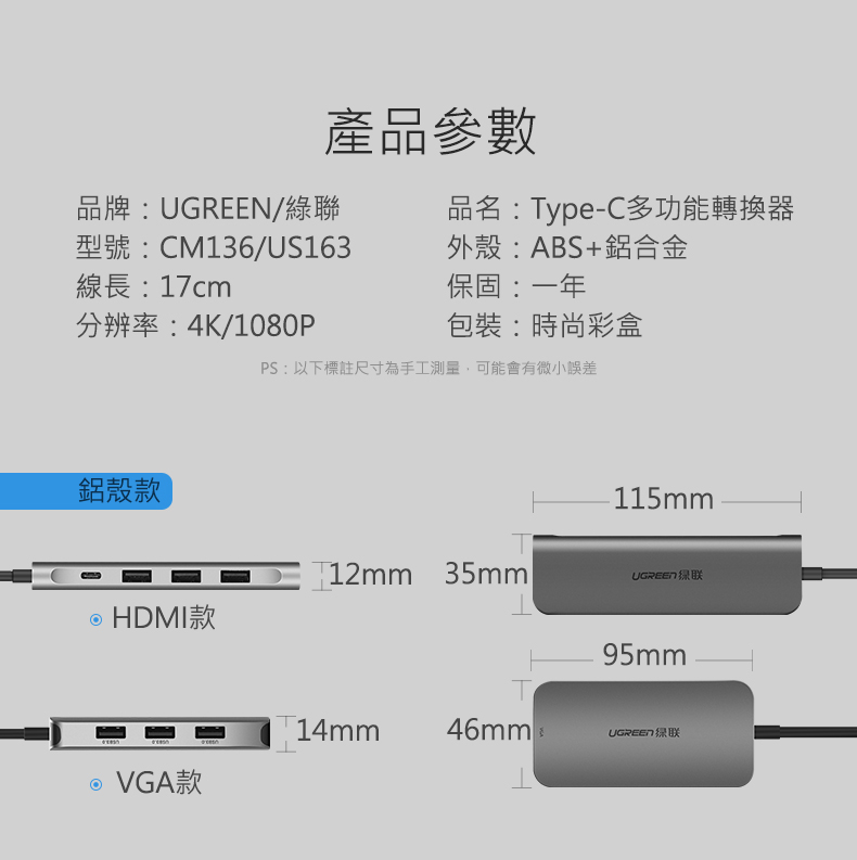 [拆封新品/福利品]綠聯 USB-C轉VGA多功能轉接器 3 Port USB3.0+PD快充
