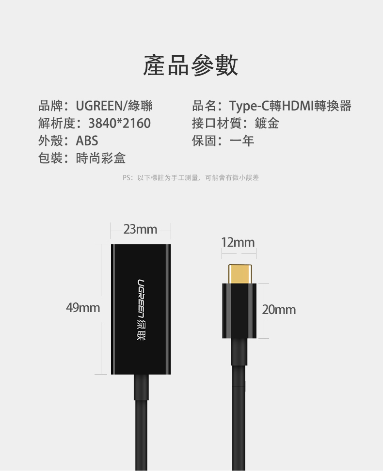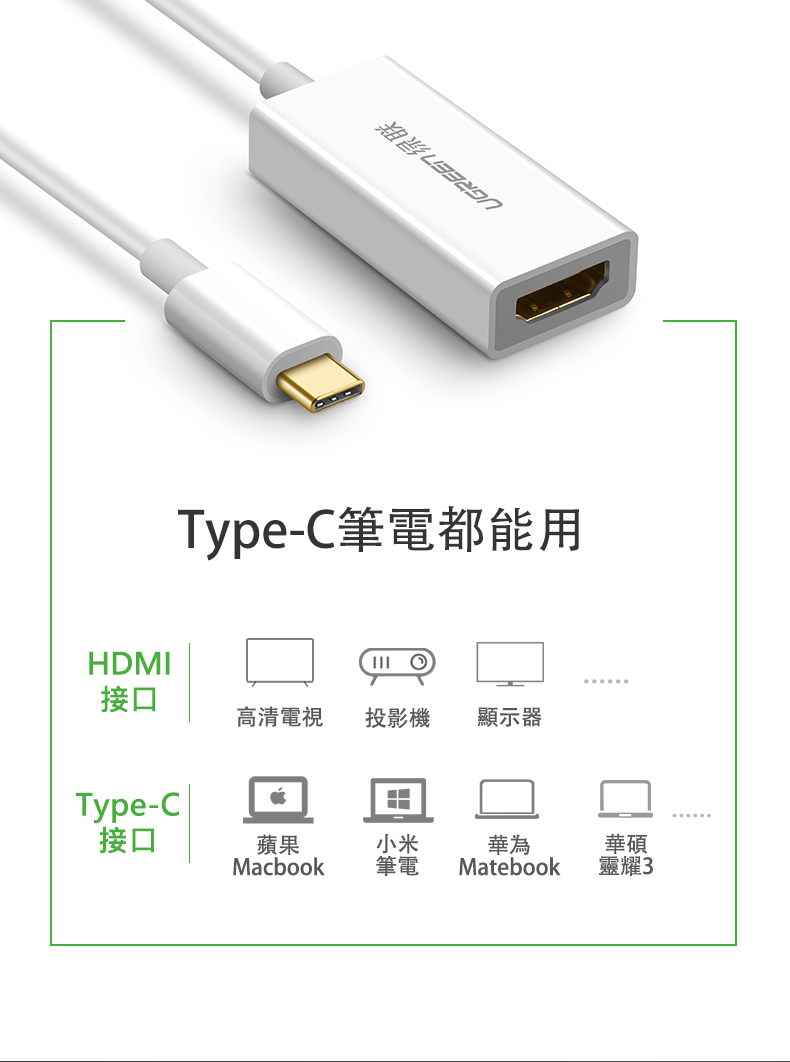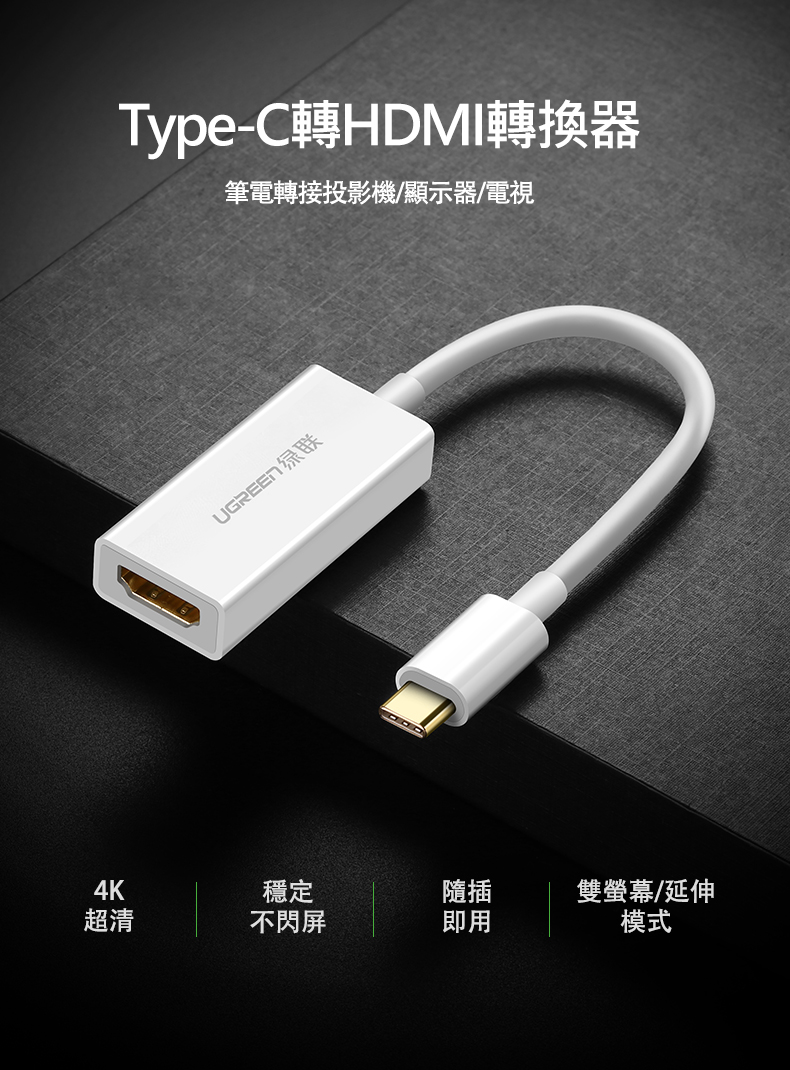 [拆封新品/福利品]綠聯 USB Type-C轉HDMI延伸傳輸線 黑色
