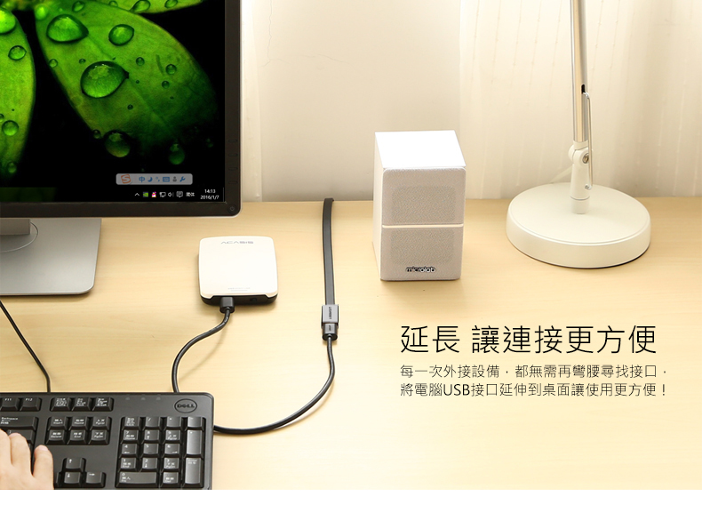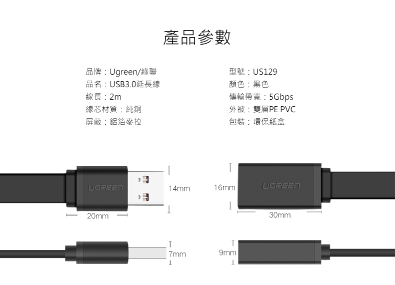 [福利品] 綠聯 USB3.0延長線 FLAT版