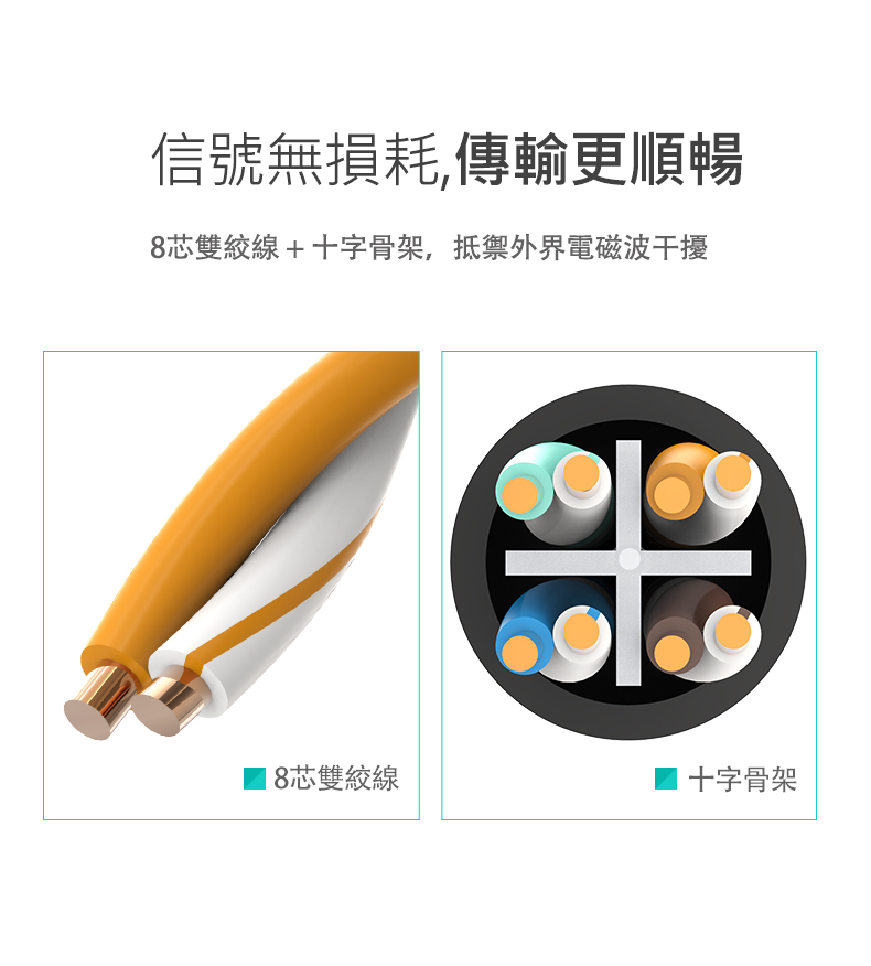 商品特色 ★ 暢享千兆,實現無損傳輸 ★ 十字骨架分隔結構 ★ 鍍鎳金屬插頭耐用可靠 ★ 高純度無氧銅導體 ★ FTP屏蔽標準