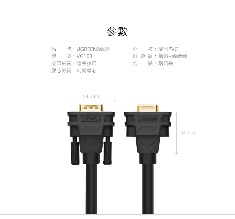 [福利品] 綠聯 VGA延長線