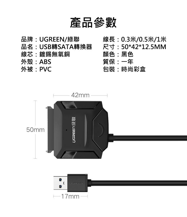 [福利品] 綠聯 SATA TO USB3.0硬碟SSD便捷傳輸線