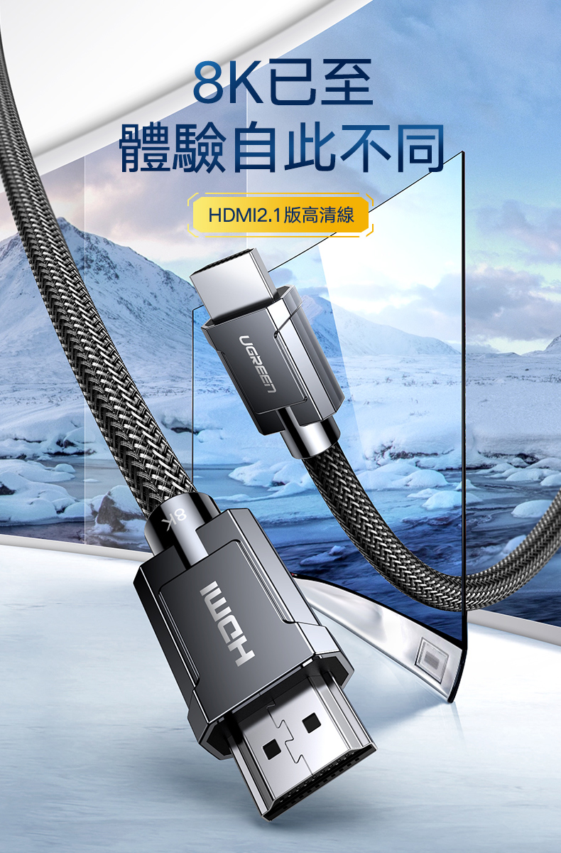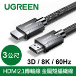 [福利品] 綠聯 8K HDMI2.1傳輸線 金屬殼編織線 3D 8K 60Hz 支援PS5