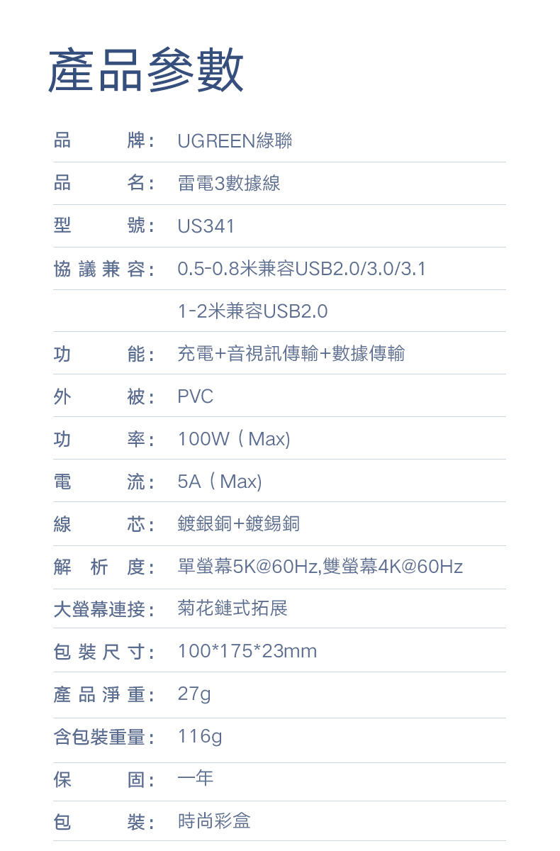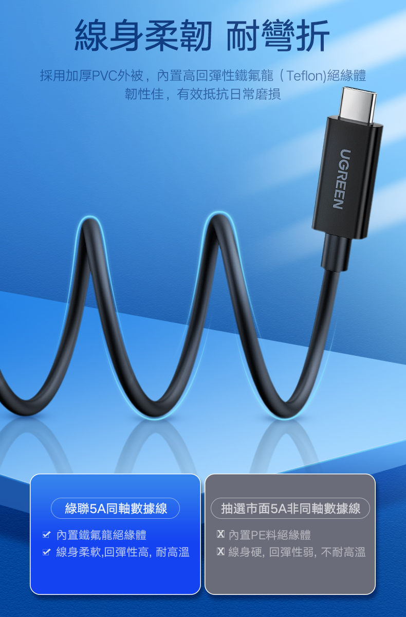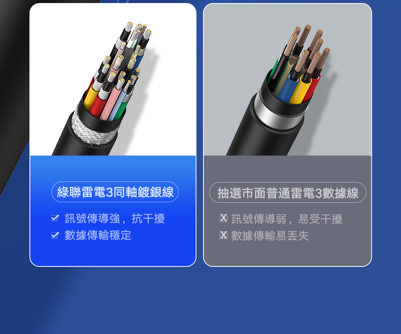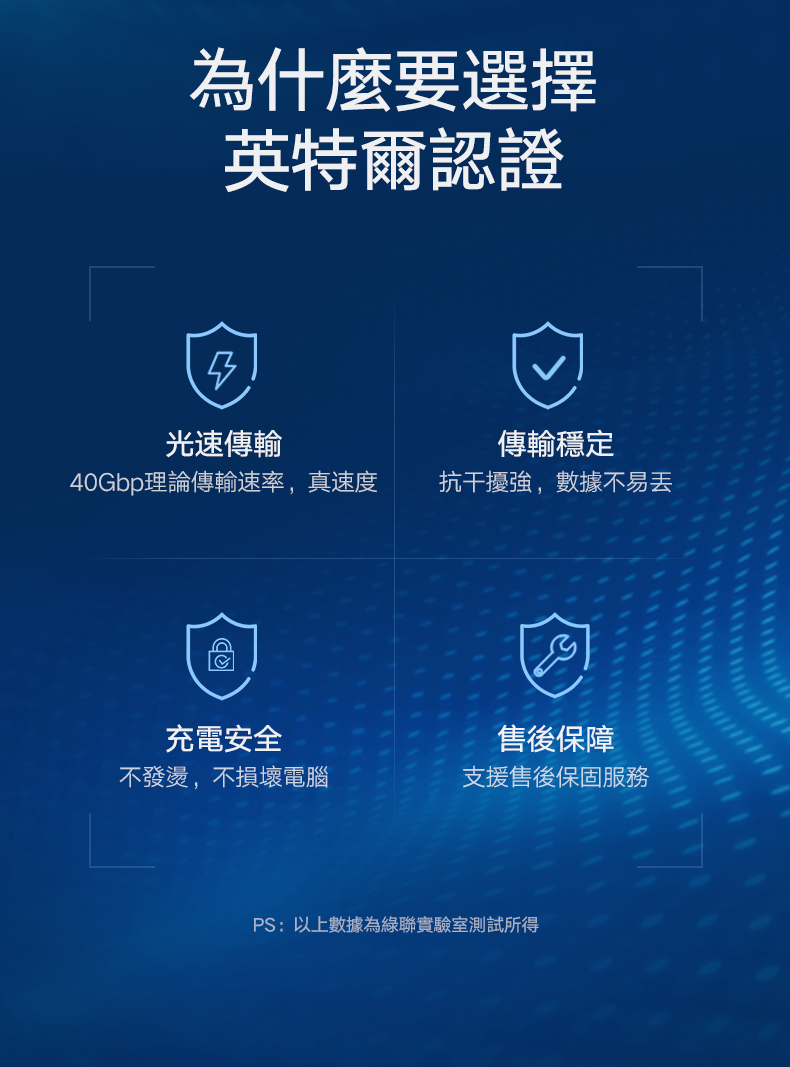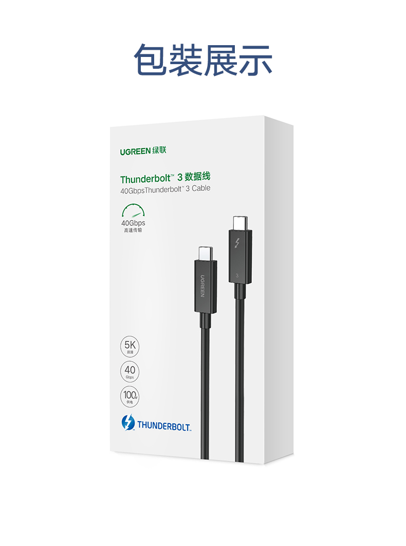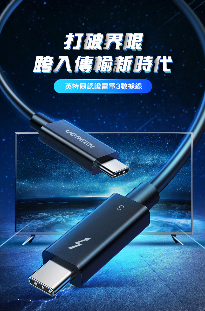 [福利品] 綠聯Thunderbolt 3雷電3 Type-C傳輸線40Gbps/100W 英特爾官方認證 旗鑑版 (2公尺)