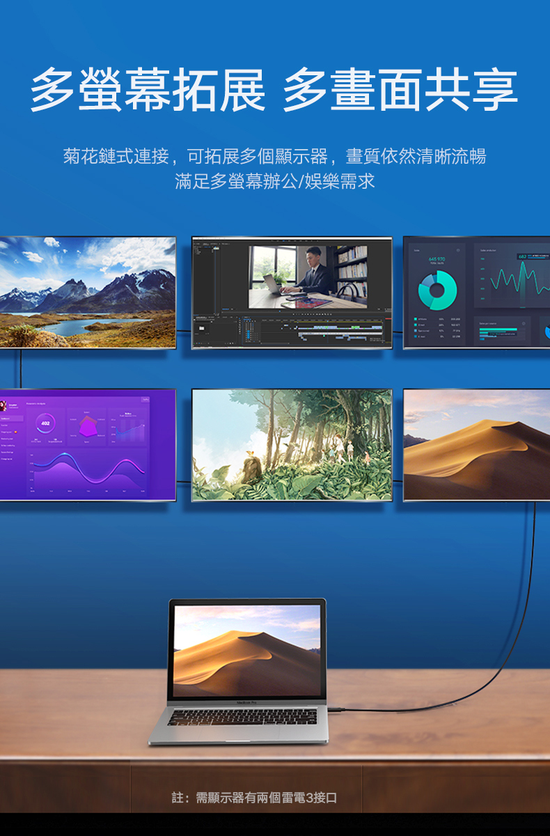 支援一個5K顯示器@60Hz視訊播放 / 4K雙顯示器@60Hz視訊播放 / 一個4k顯示器@120Hz視訊播放