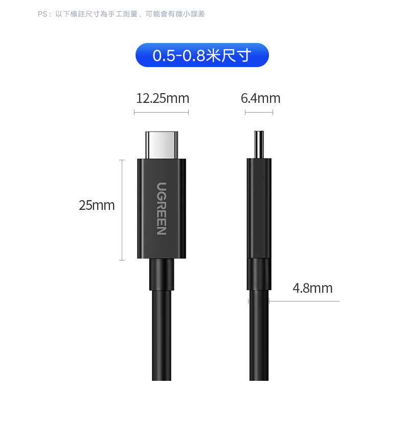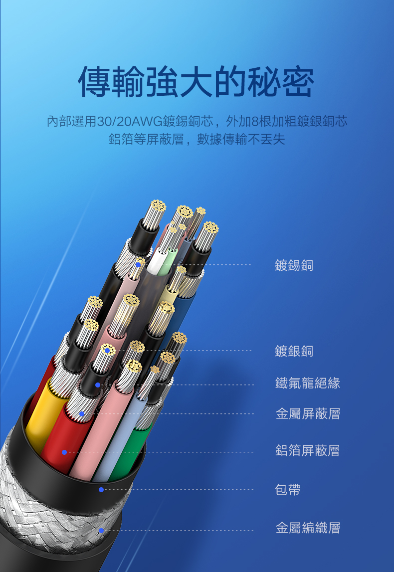 材質:PVC耐折線材,線徑4.6cm的同軸線,兩端使用鋁合金外盒包覆