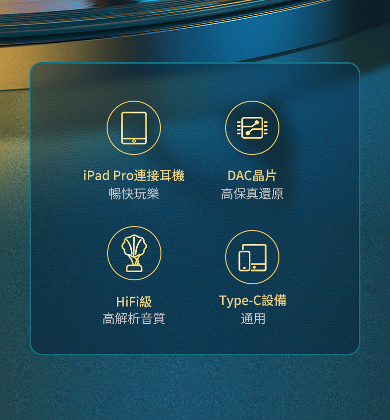 ◆iPad Pro連接耳機 暢快玩樂 ◆DAC晶片 高保真還原 ◆HiFi級 高解析音質 ◆更強兼容 Type-C設備通用 ◆語音無延遲 不卡頓 ◆iPhone 15 適用