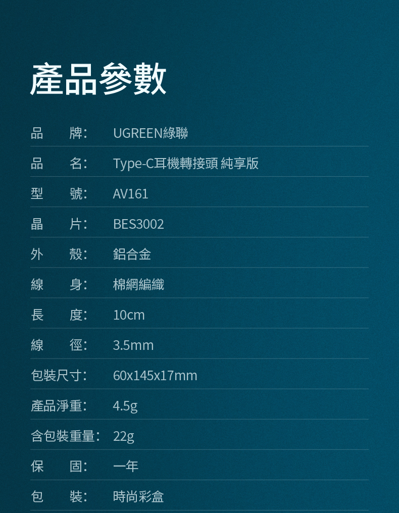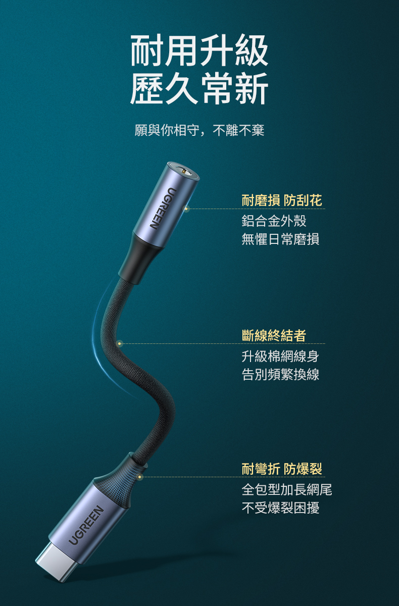 [福利品] 綠聯 Type-C轉3.5mm音源傳輸線 DAC晶片 HiFi版