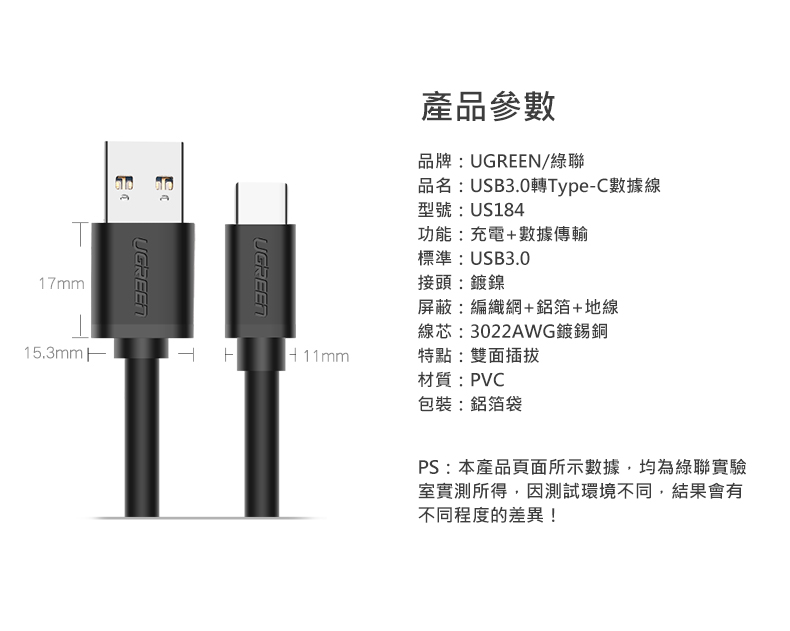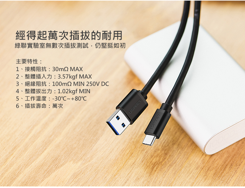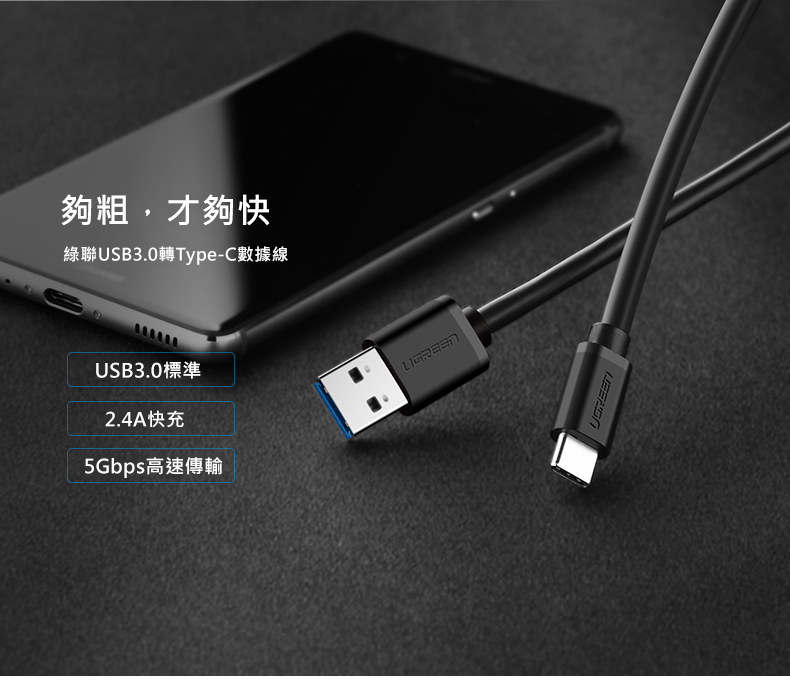 [福利品] 綠聯 USB3.0 Type-C快充傳輸線