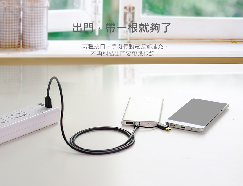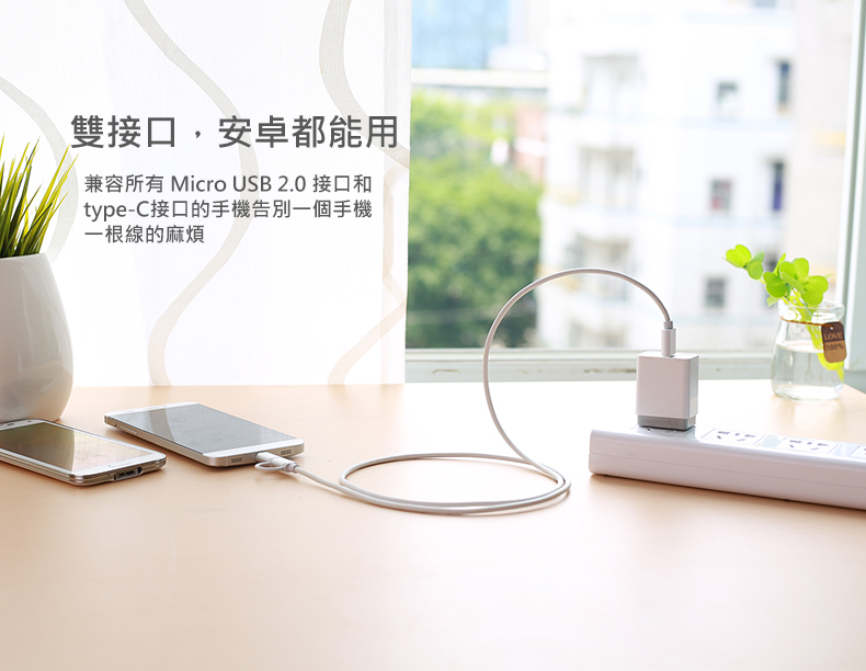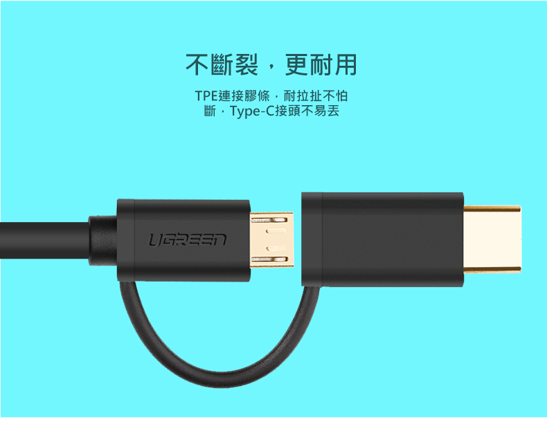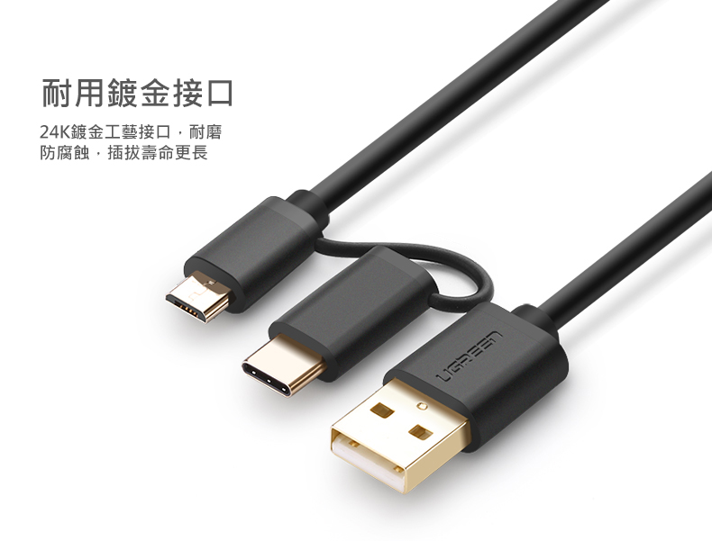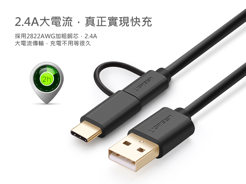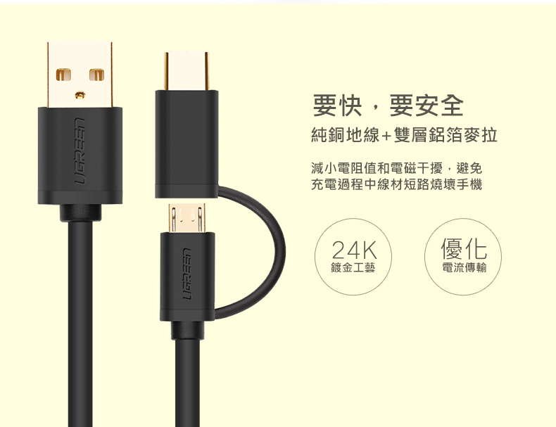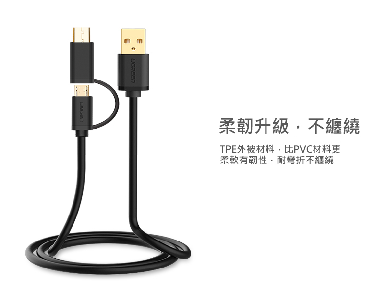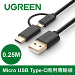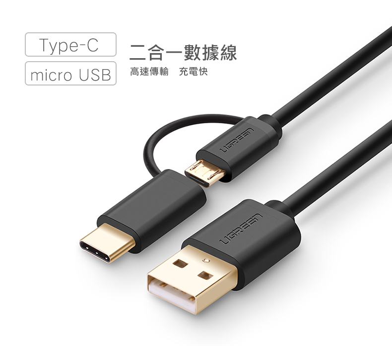 [福利品] 綠聯 Micro USB Type-C兩用快充傳輸線