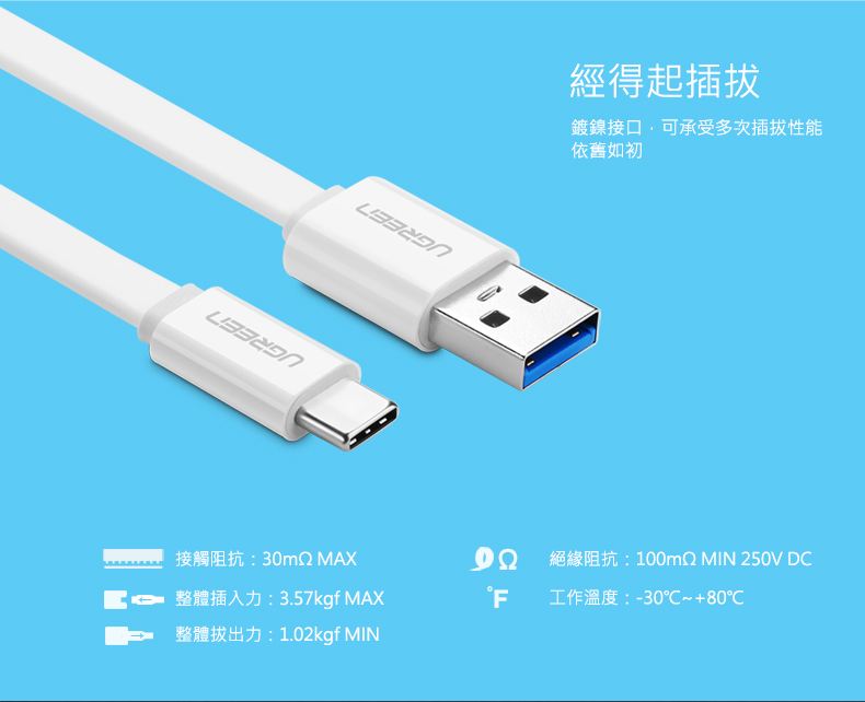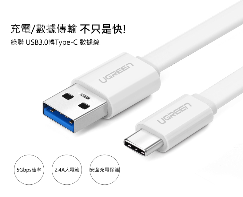 [福利品] 綠聯 USB3.0 Type-C快充傳輸線