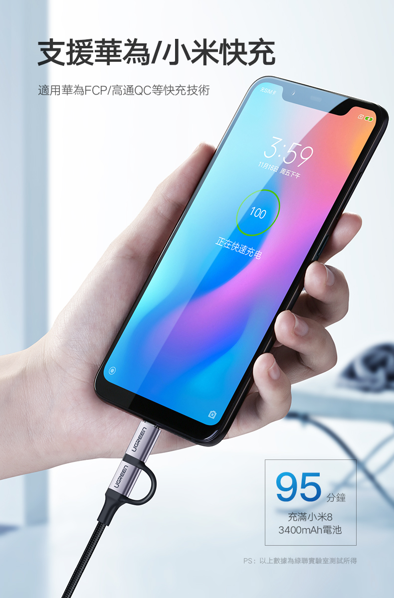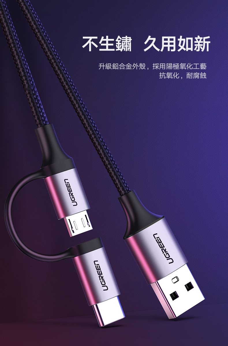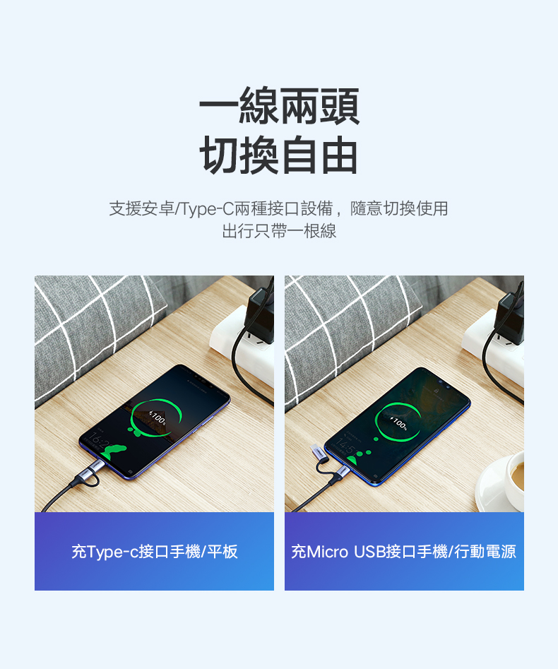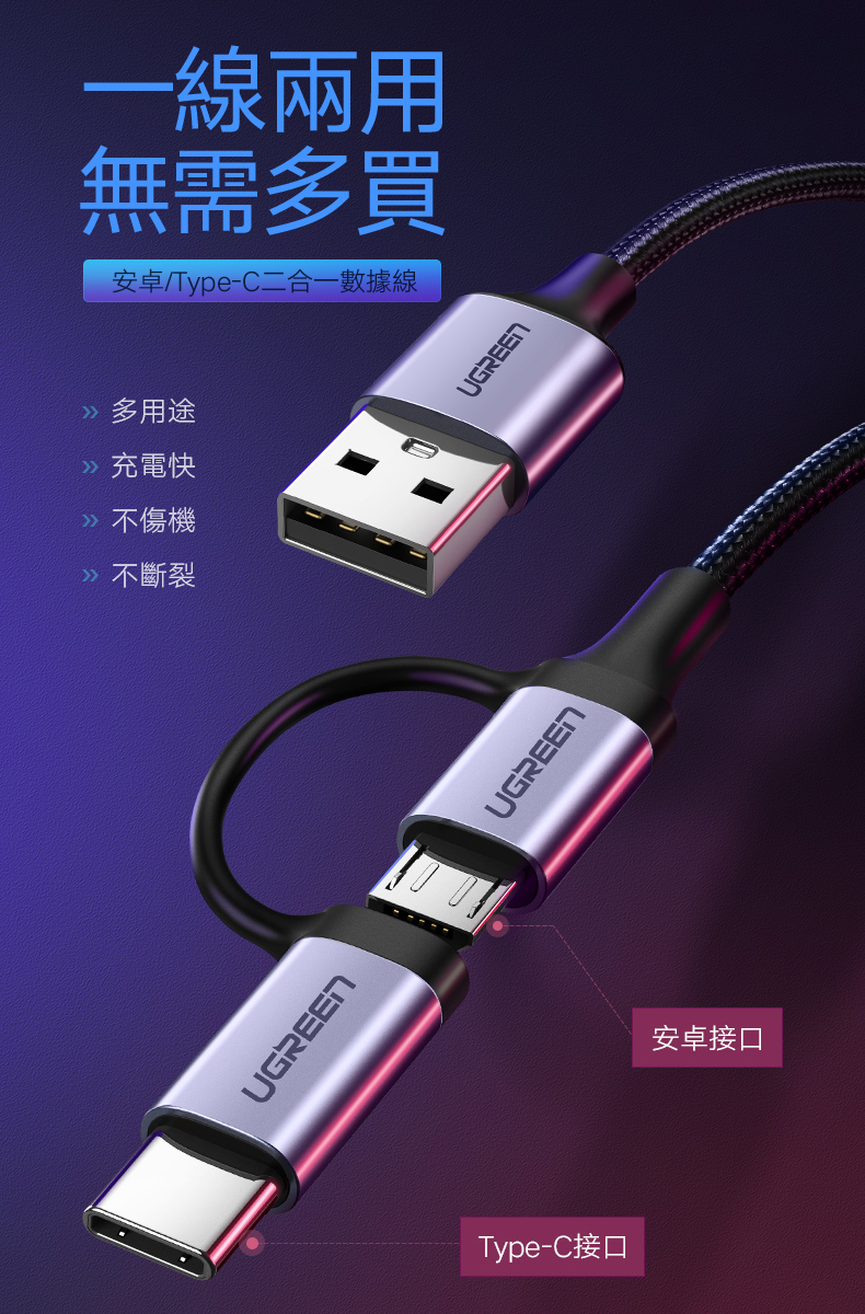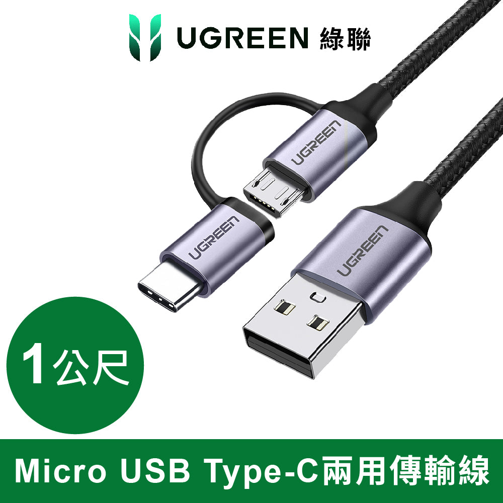 [福利品] 綠聯 1M 3A快充 Micro USB Type-C兩用傳輸線 編織