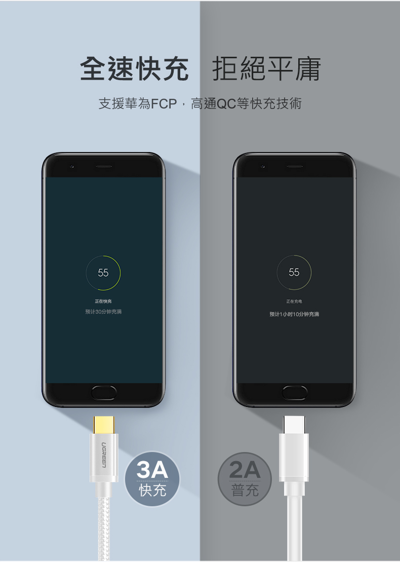 [福利品] 綠聯 USB Type-C快充傳輸線 BRAID版 深邃黑