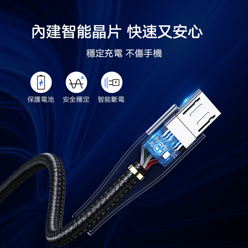 商品特色 ★2.4A高速電流快速充滿 ★支援QC及華為FCP快充 ★支援480Mbps快速傳輸 ★SR強化保護堅固更耐用 ★內建智能晶片快速又安心 ★保護電池智能斷電