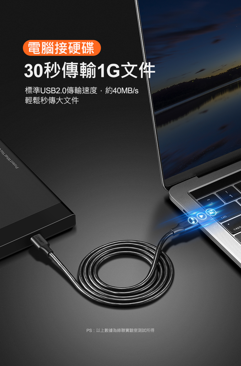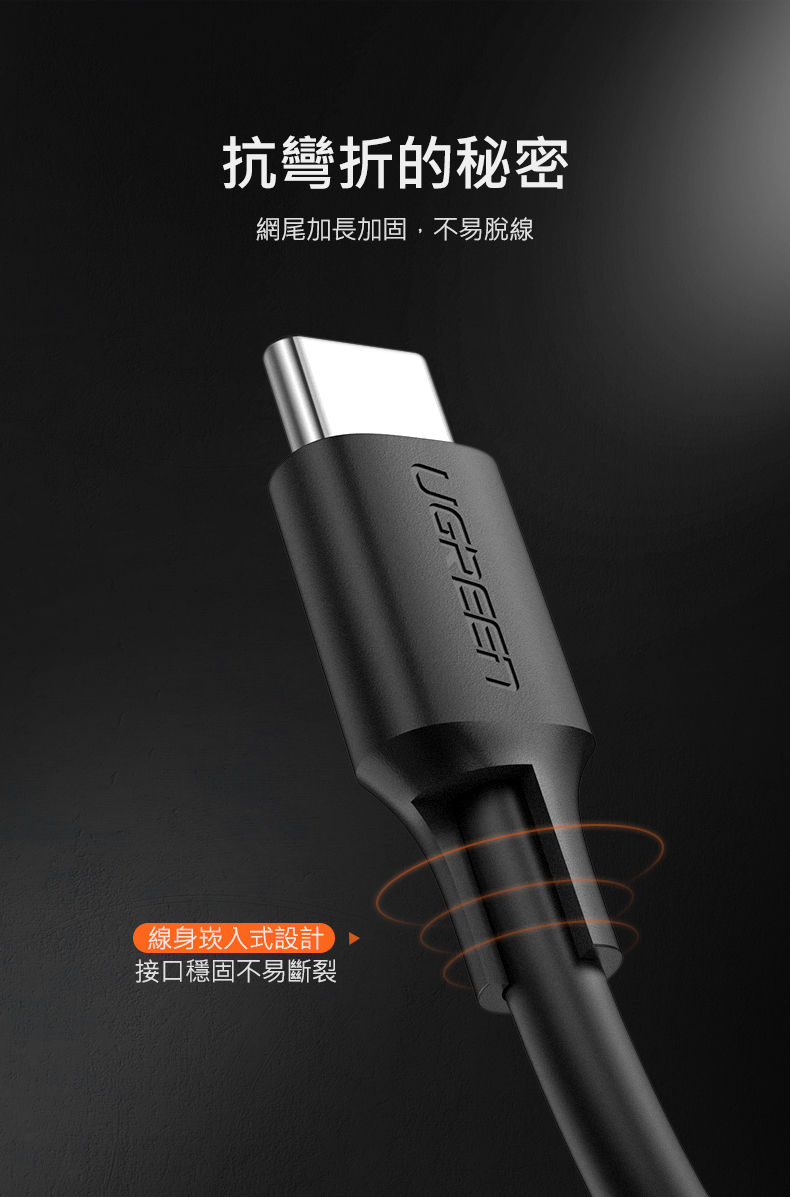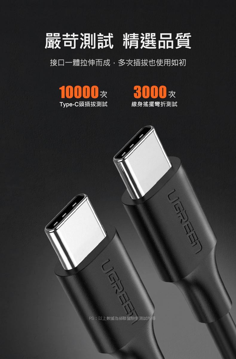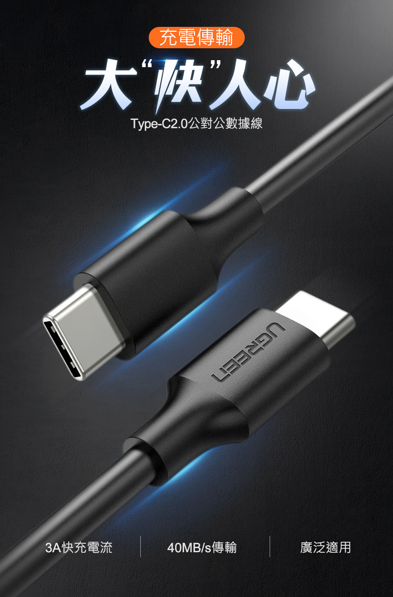 [福利品] 綠聯 Type-C 2.0快充傳輸線 黑色