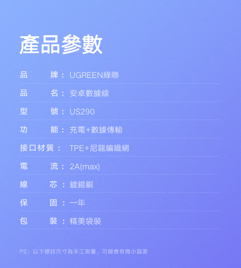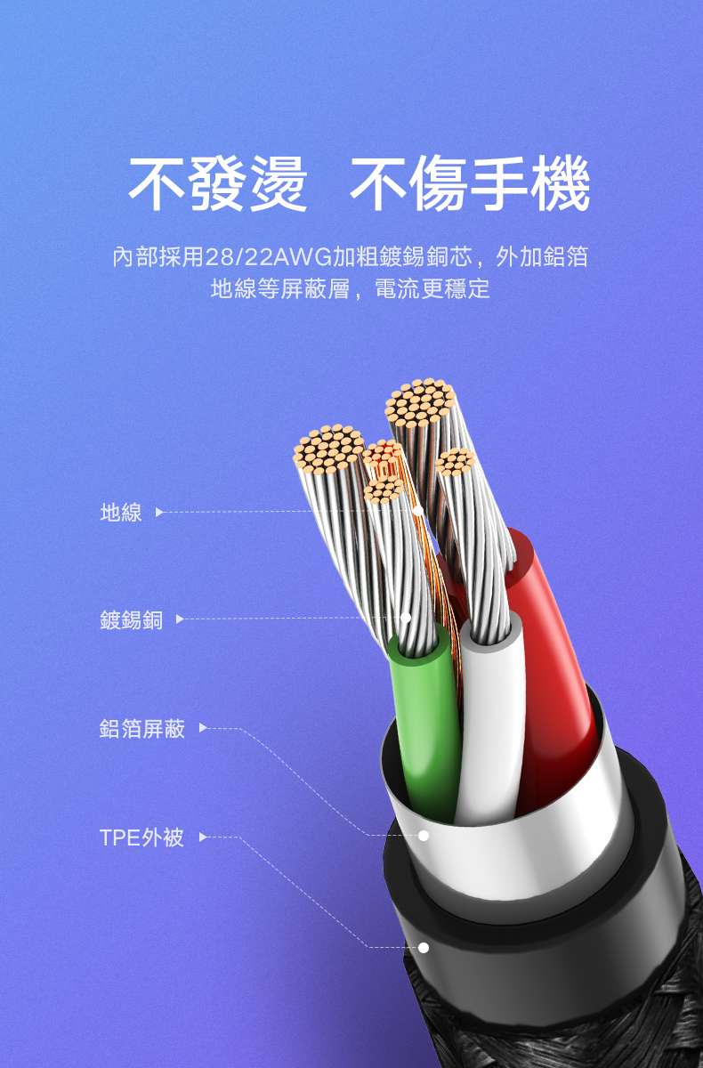 【商品特色】 ★2A大電流快速充滿手機 ★支援華為快充 ★28/22AWG加粗鍍錫銅芯 ★不發燙不傷手機 ★高強度尼龍編織網不開裂耐磨損 ★網尾加固受力均勻更耐用 ★接頭一體拉伸不鬆動耐插拔 ★升級鋁合金外殼不生鏽久用如新