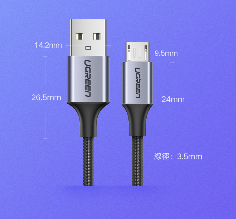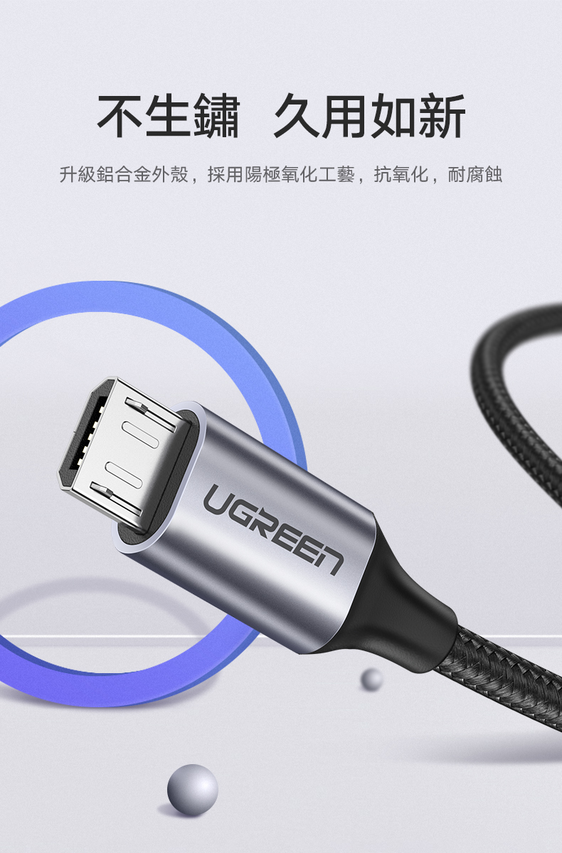 [福利品]綠聯 Micro USB快充傳輸線 Aluminum BRAID版
