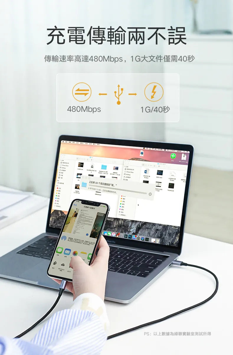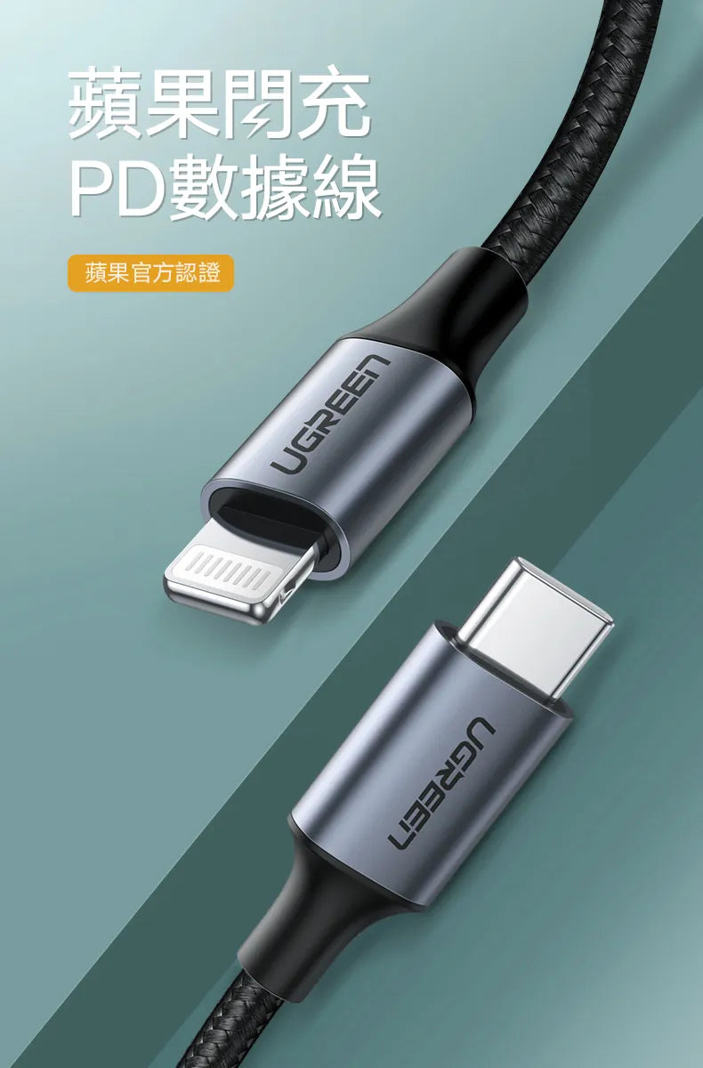 [福利品] 綠聯 iPhone充電線MFi蘋果官方認證USB-C to Lightning快充傳輸線 金屬編織版