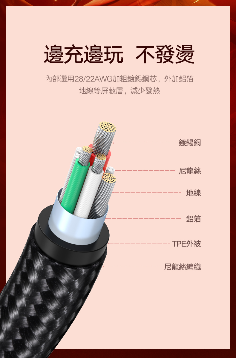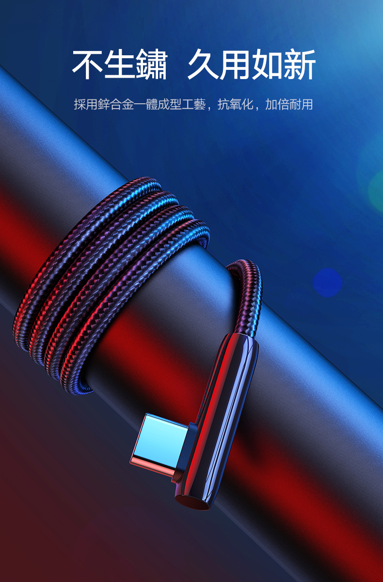 ◆90度彎頭設計 邊充邊玩不擋手 ◆鋅合金一體成形工藝 抗氧化加倍耐用 ◆多股尼龍交錯 緊密包裹TPE線身 ◆28/22AWG加粗鍍錫銅芯 外加鋁箔地線屏蔽層 ◆內置電阻不傷機 快才有意義 ◆充電/傳輸 兩不誤 ◆原廠編號:70413
