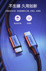 [福利品] 綠聯 PD 100W 5A快充電線/傳輸線Type-C對Type-C金屬殼編織線