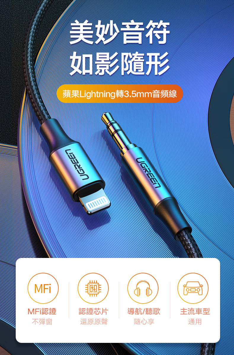【商品特色】 ★蘋果MFi認證穩定兼容拒絕彈窗 ★原廠認證芯片還原音樂細節 ★蘋果手機連接車載音響清晰播報導航 ★適用帶有AUX接口的車型 ★有光絲編織線身告別頻繁換線 ★鋁合金外殼無懼日常磨損 ★原廠外箱破損/產品外觀略有磨損/配件完整/功能正常★