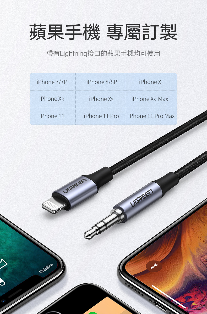 [福利品] 綠聯 iPhone 1M MFi Lightning轉3.5mm傳輸線 公對公 深空灰