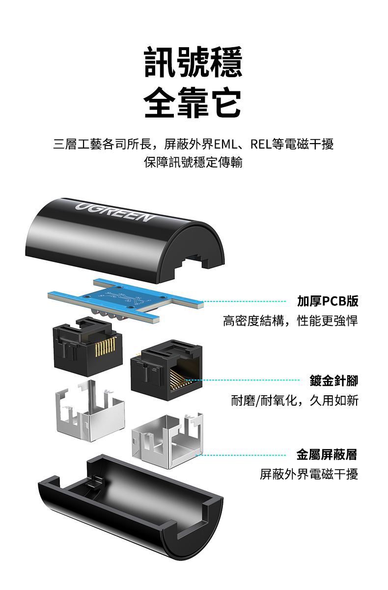 ◆長距離對接 網速穩定 ◆延長不降速 支援千/百兆 ◆金屬屏蔽層 隔離抗干擾 ◆100米遠距離傳輸 ◆卡扣式插套設計 緊密連接不鬆動