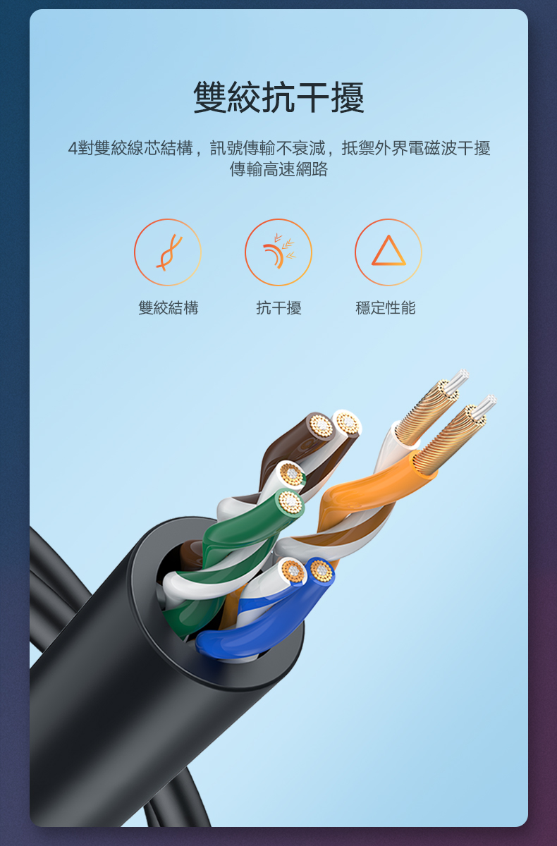 ◆直徑2.8mm纖細線身 讓佈線更方便 ◆符合萬兆網路線標準 傳輸更快 ◆32AWG純銅線芯 低阻抗損耗小 ◆4對雙絞線芯 抗干擾不衰減 ◆PVC外被 耐磨損抗拉扯 ◆純銅鍍金觸點 三叉式芯片更快更穩