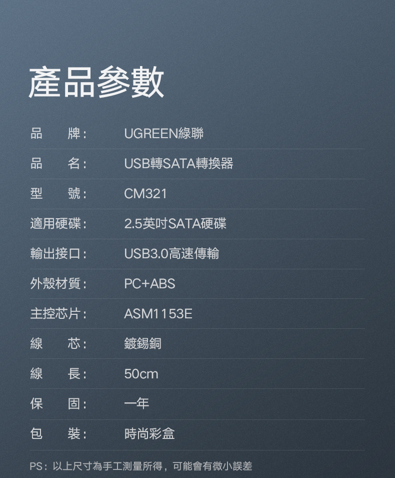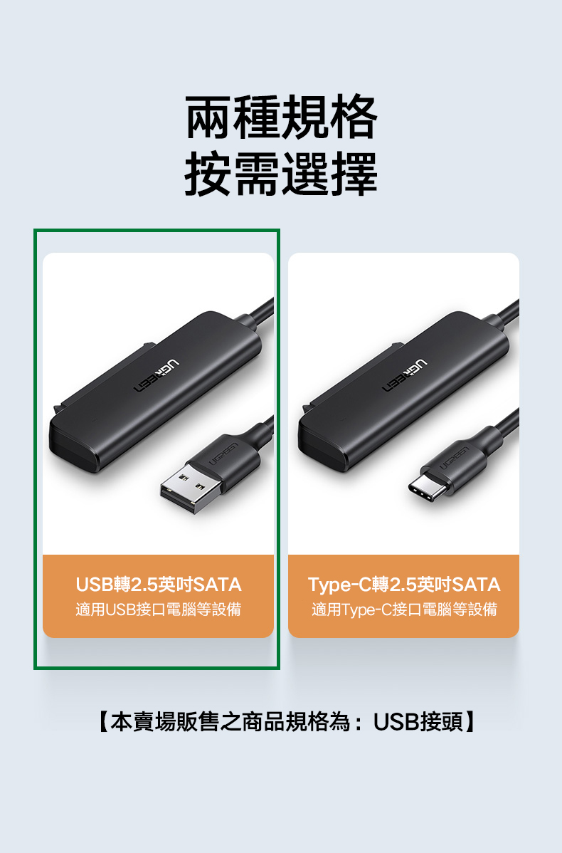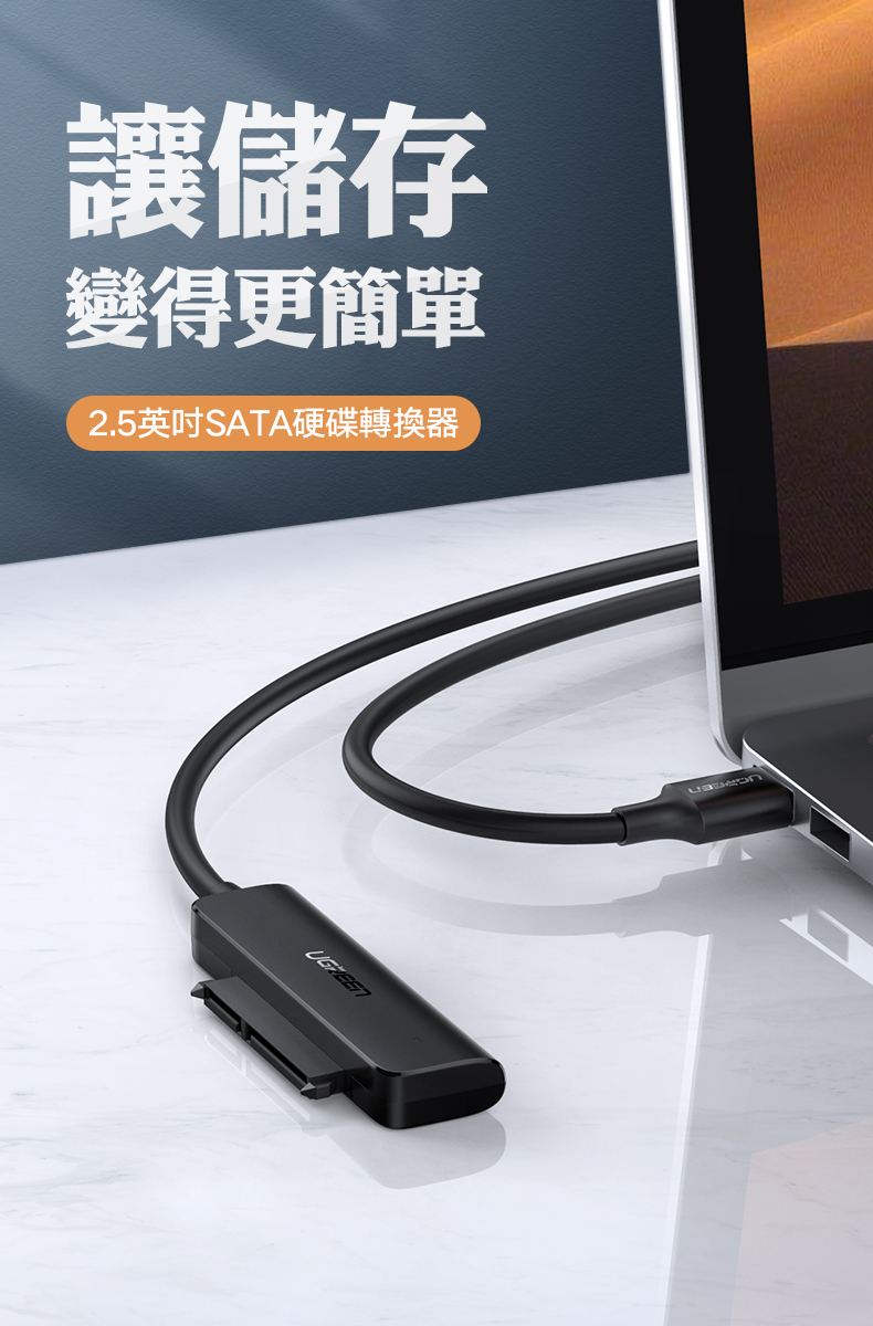 綠聯 USB轉SATA 2.5吋硬碟SSD便捷傳輸線 支援6TB