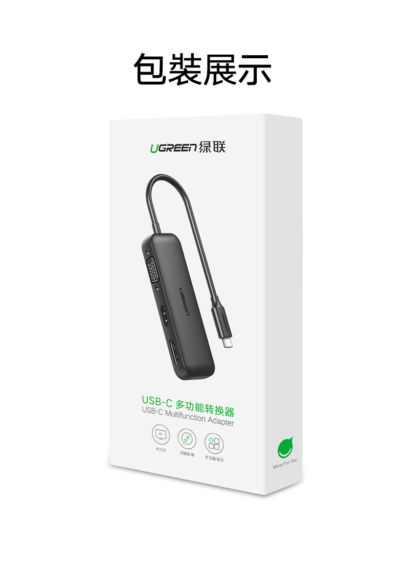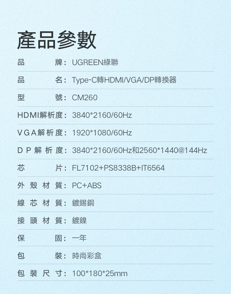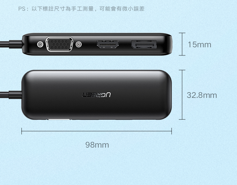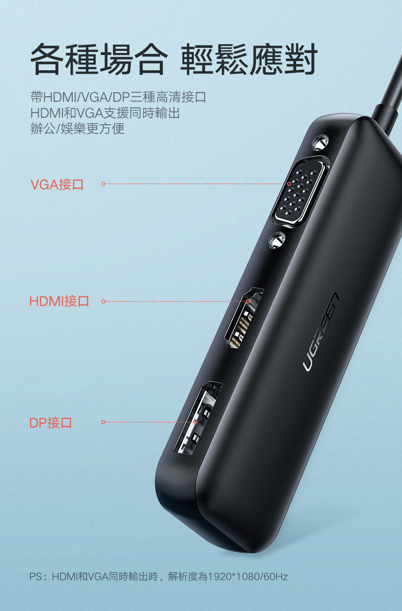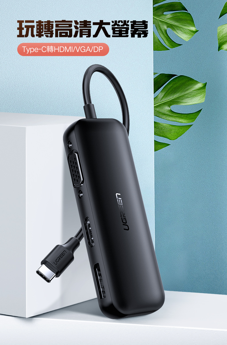 [拆封新品/福利品]綠聯 USB-C/Type-C轉4K HDMI+DP/DisplayPort +VGA轉換器